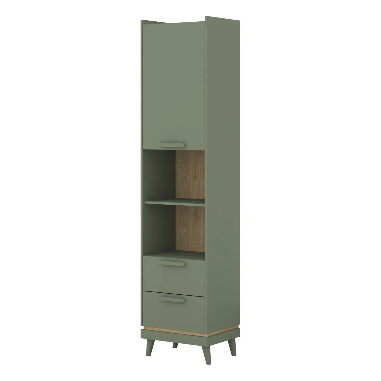 De Boekenkast Skagen combineert eenvoud met praktische opbergruimte. Het strakke silhouet wordt verrijkt met subtiele houtaccenten en slanke poten, wat de kast een luchtige en moderne uitstraling geeft. De kast beschikt over meerdere open vakken voor boeken of decoratie, en twee lades waarin je kleinere spullen netjes uit het zicht kunt opbergen.