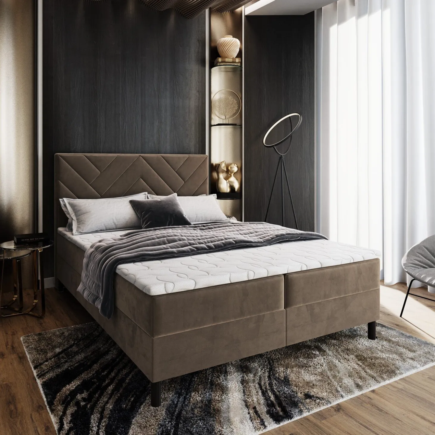 Het handgemaakte hoofdbord is prachtig uitgevoerd met gestikte vakken. Dit geeft de boxspring direct een luxe uitstraling.