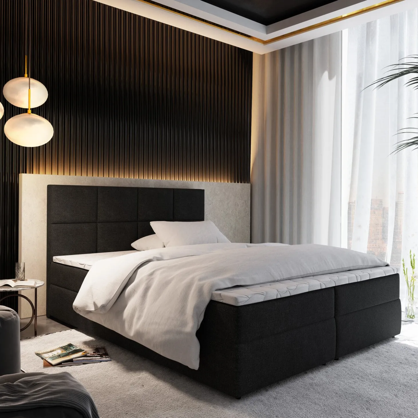 Het handgemaakte hoofdbord is prachtig uitgevoerd met 8 grote vakken. Dit geeft de boxspring direct een luxe uitstraling.