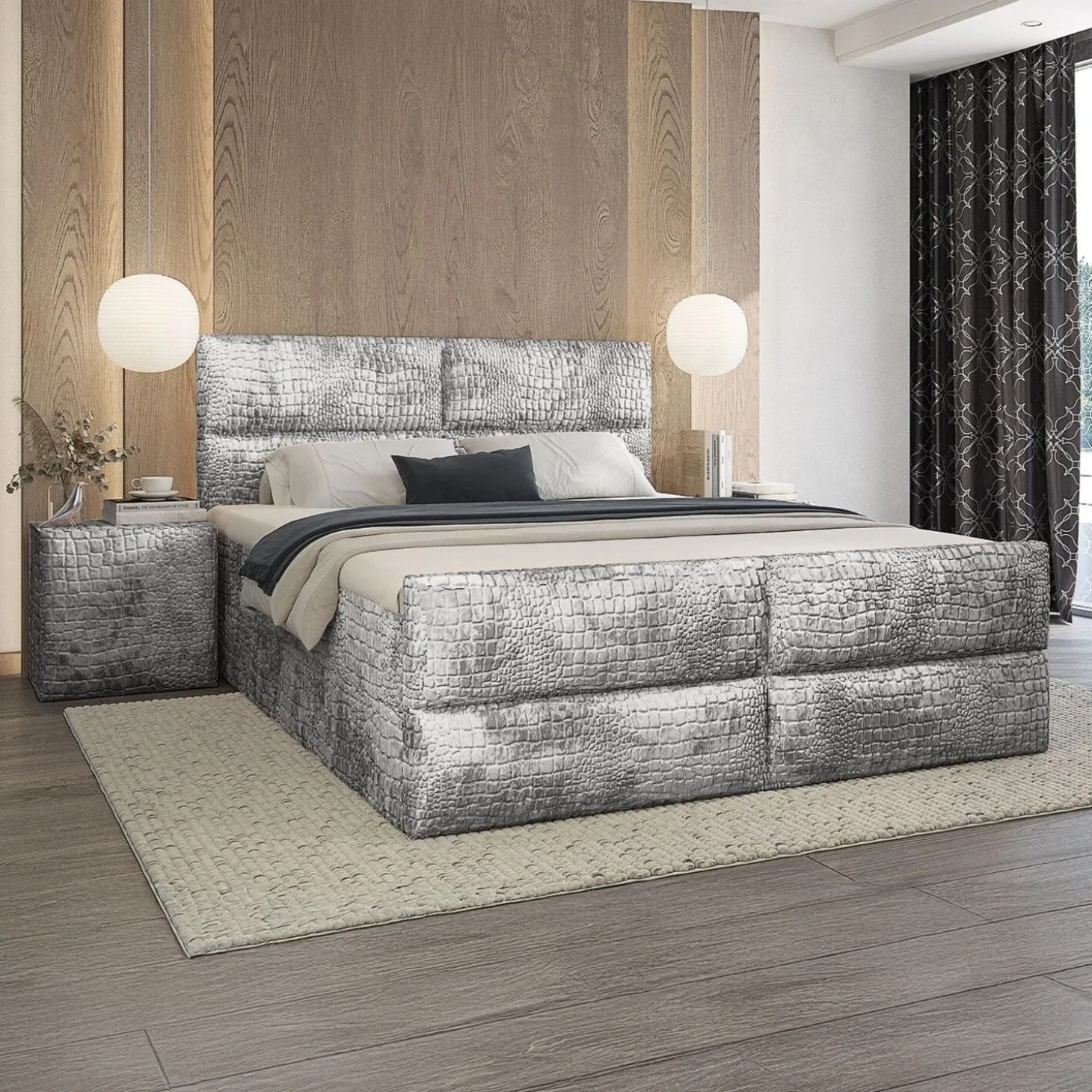 Boxspring met opbergruimte Velvet Croco – Incl. GRATIS voetbord!