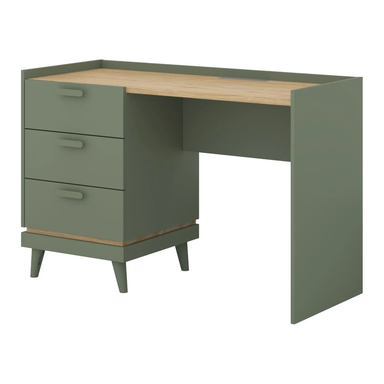 Het Bureau Skagen combineert eenvoud met praktische functionaliteit. Het strakke silhouet krijgt extra karakter door subtiele houtaccenten en slanke poten, die zorgen voor een moderne en luchtige uitstraling. Met drie ruime lades biedt dit bureau voldoende opbergruimte voor kantoorbenodigdheden, documenten of accessoires, zodat je werkplek altijd netjes en overzichtelijk blijft.