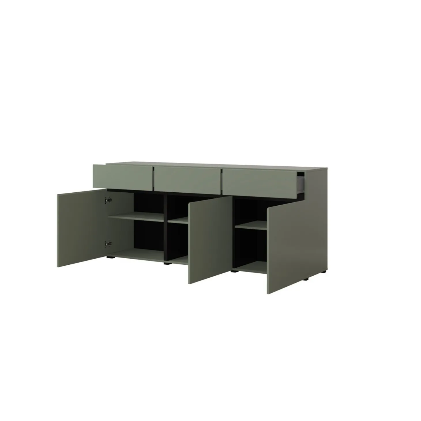 Het dressoir Crotone heeft een strak en modern ontwerp met een greeploos front en een rustige, symmetrische indeling. De combinatie van meerdere kastvakken zorgt voor overzichtelijke opbergruimte, terwijl het minimalistische design zorgt voor een nette en eigentijdse uitstraling.