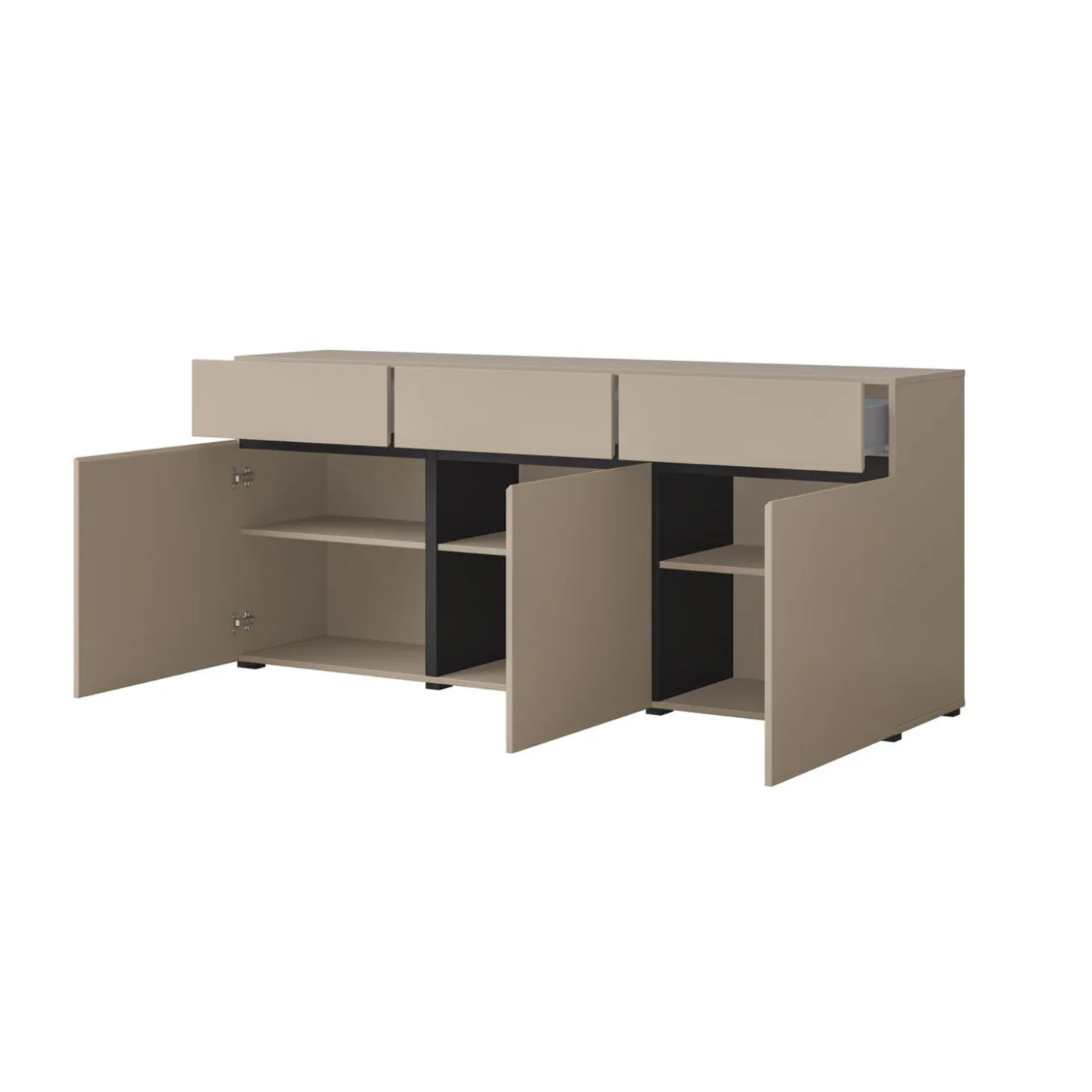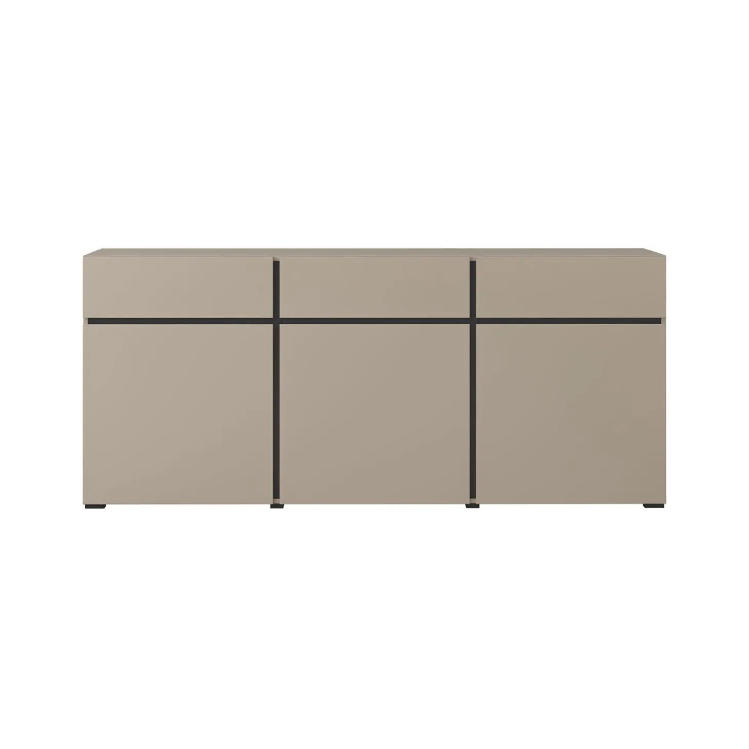 Het dressoir Crotone heeft een strak en modern ontwerp met een greeploos front en een rustige, symmetrische indeling. De combinatie van meerdere kastvakken zorgt voor overzichtelijke opbergruimte, terwijl het minimalistische design zorgt voor een nette en eigentijdse uitstraling.