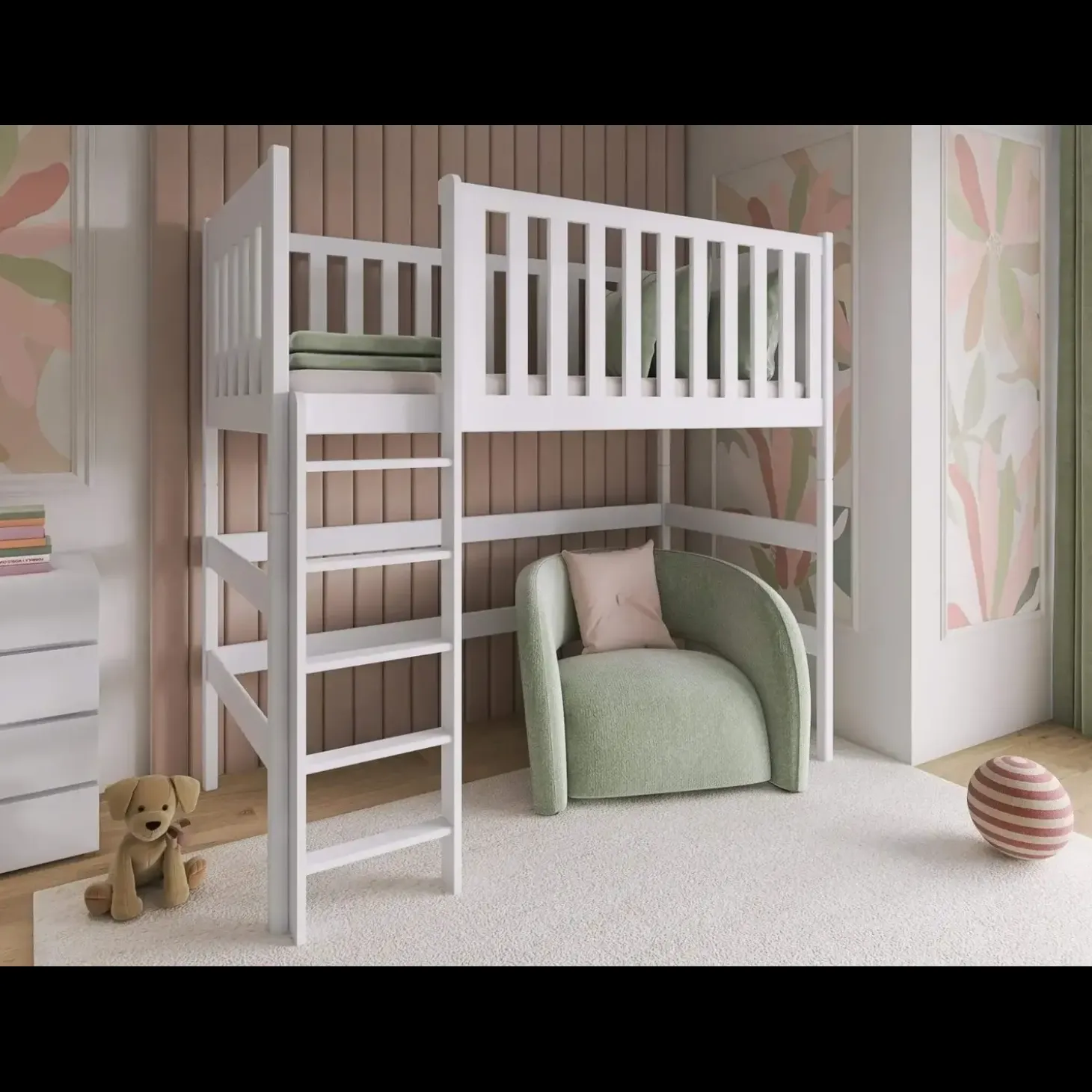 De Hoogslaper Lara maakt slim gebruik van de beschikbare ruimte door slaapplaats en vloeroppervlak te combineren. Onder het bed is volop plek voor een bureau, zitgedeelte of speelhoek, waardoor dit bed ideaal is voor compacte slaapkamers. Het stevige frame met valbescherming en een veilige trap zorgt voor een zorgeloze nachtrust.
