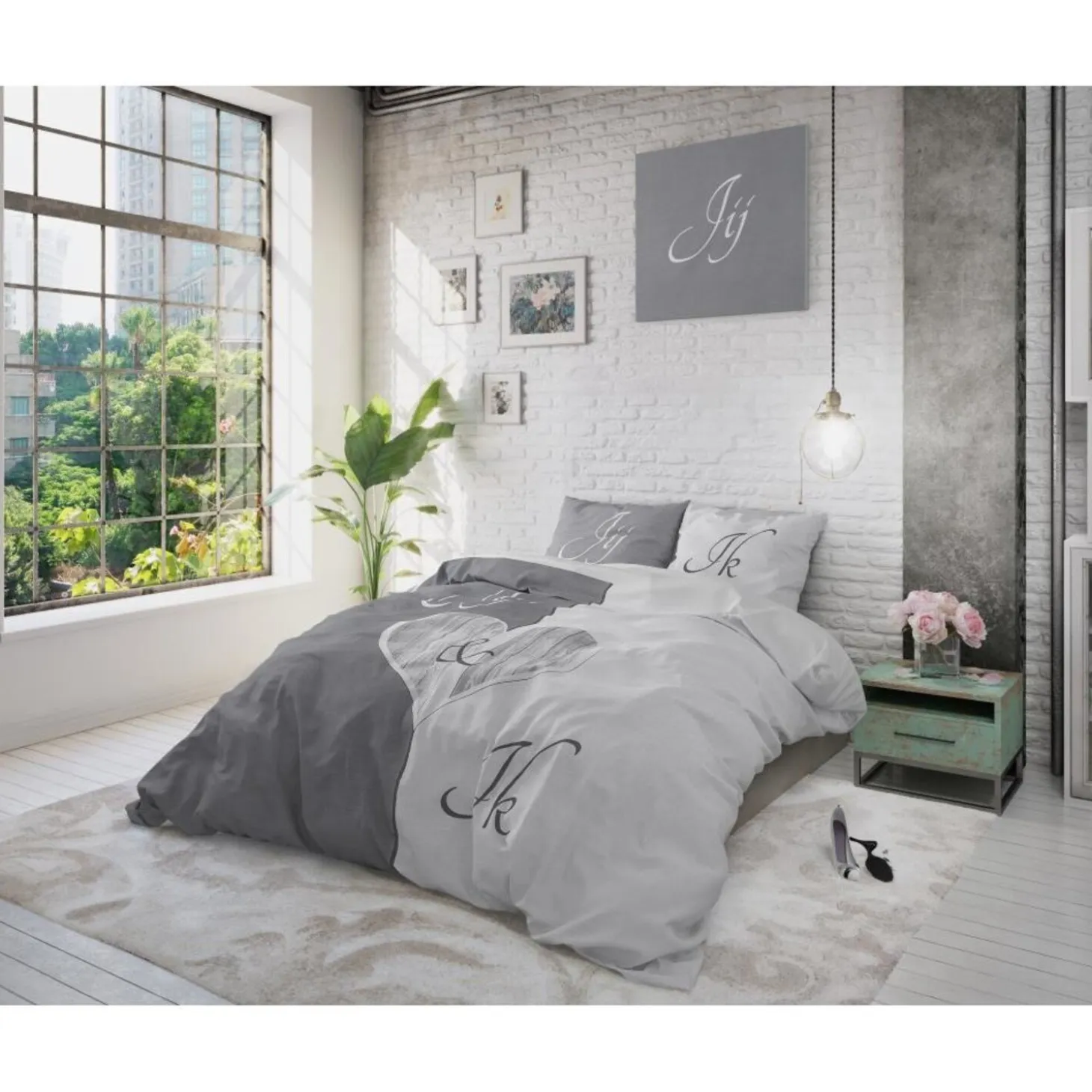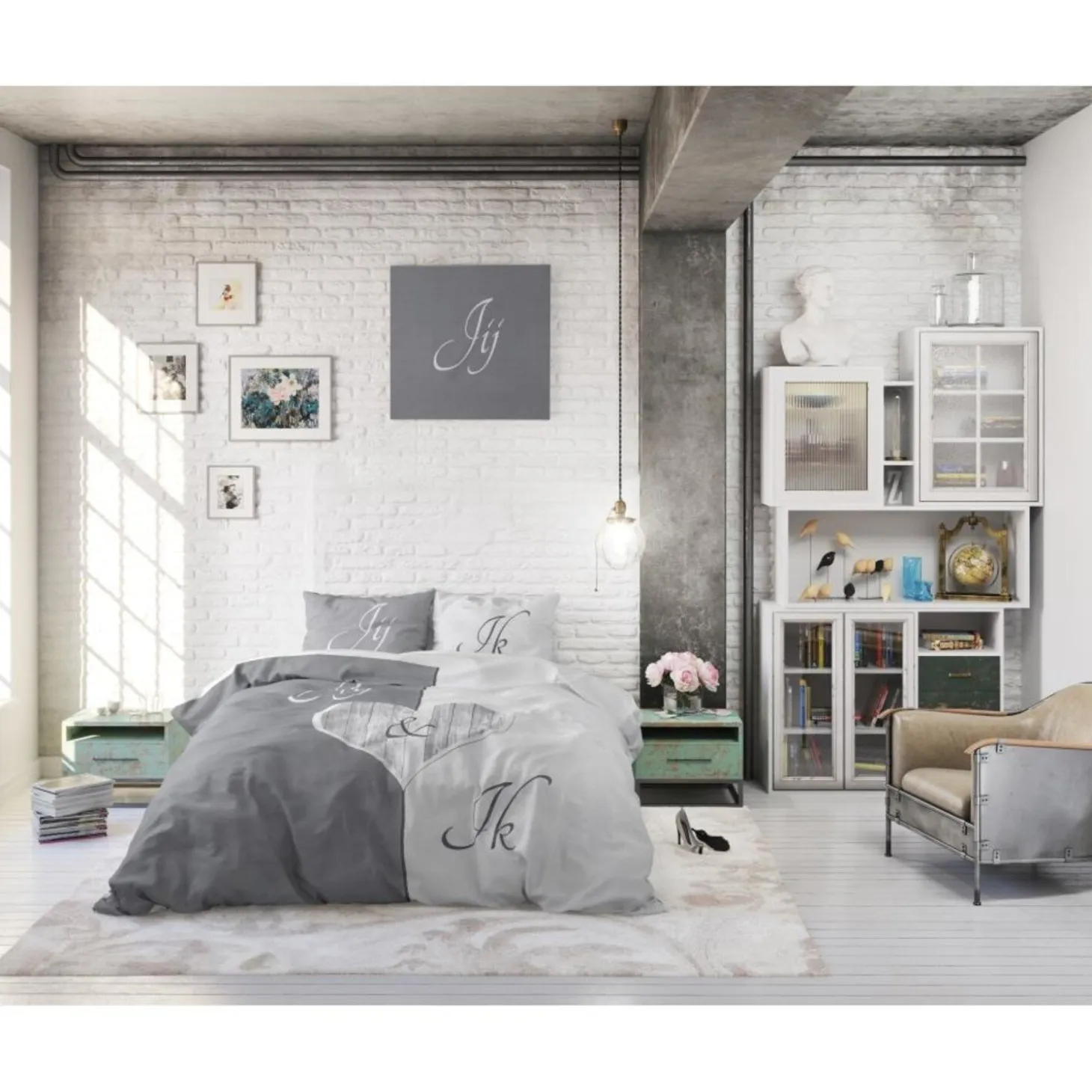 100 % katoen /Het contrast tussen de kleuren grijs en wit laat zowel het dekbedovertrek als de tekst volledig tot zijn recht komen.