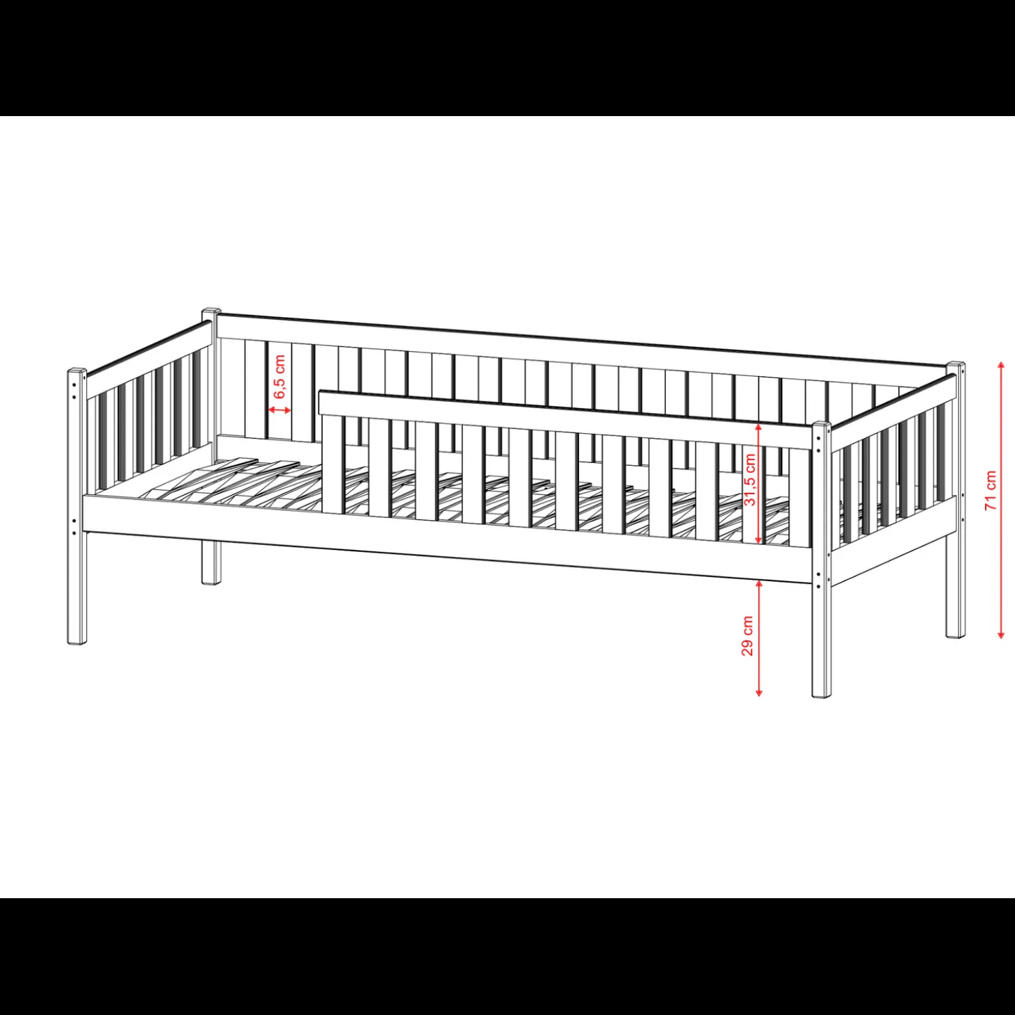 – Breedte: ca. 8 cm breder dan matrasmaat