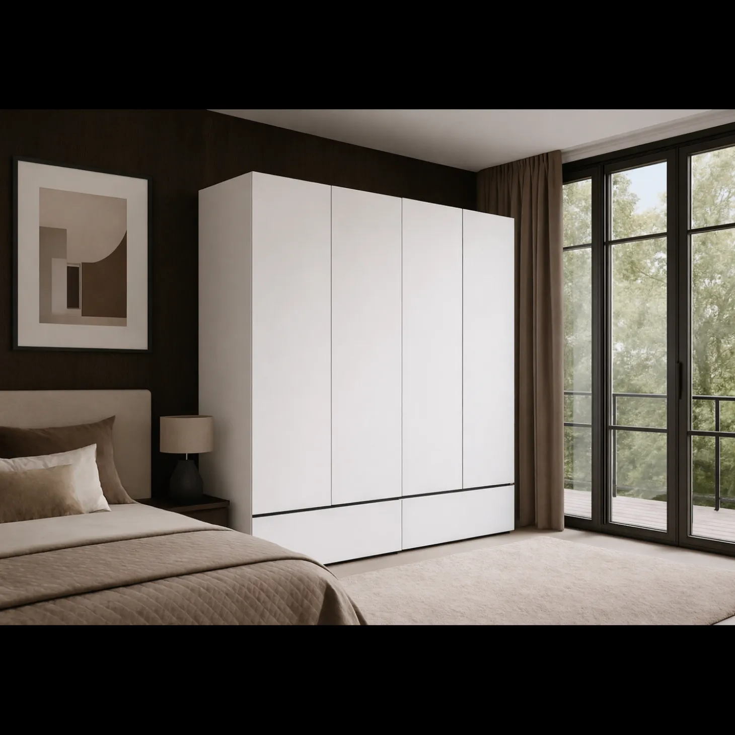 Kledingkast Crotone – Wit – 4-Deurs met Lades