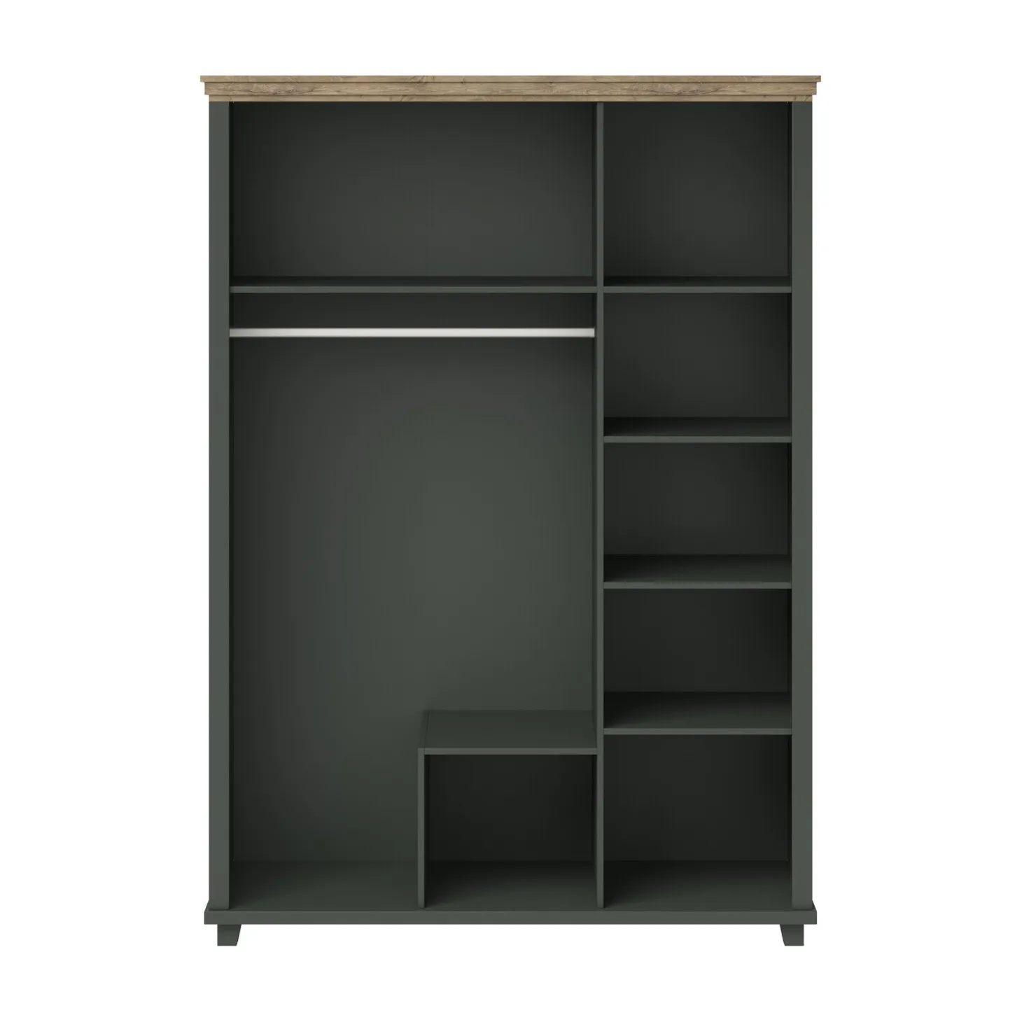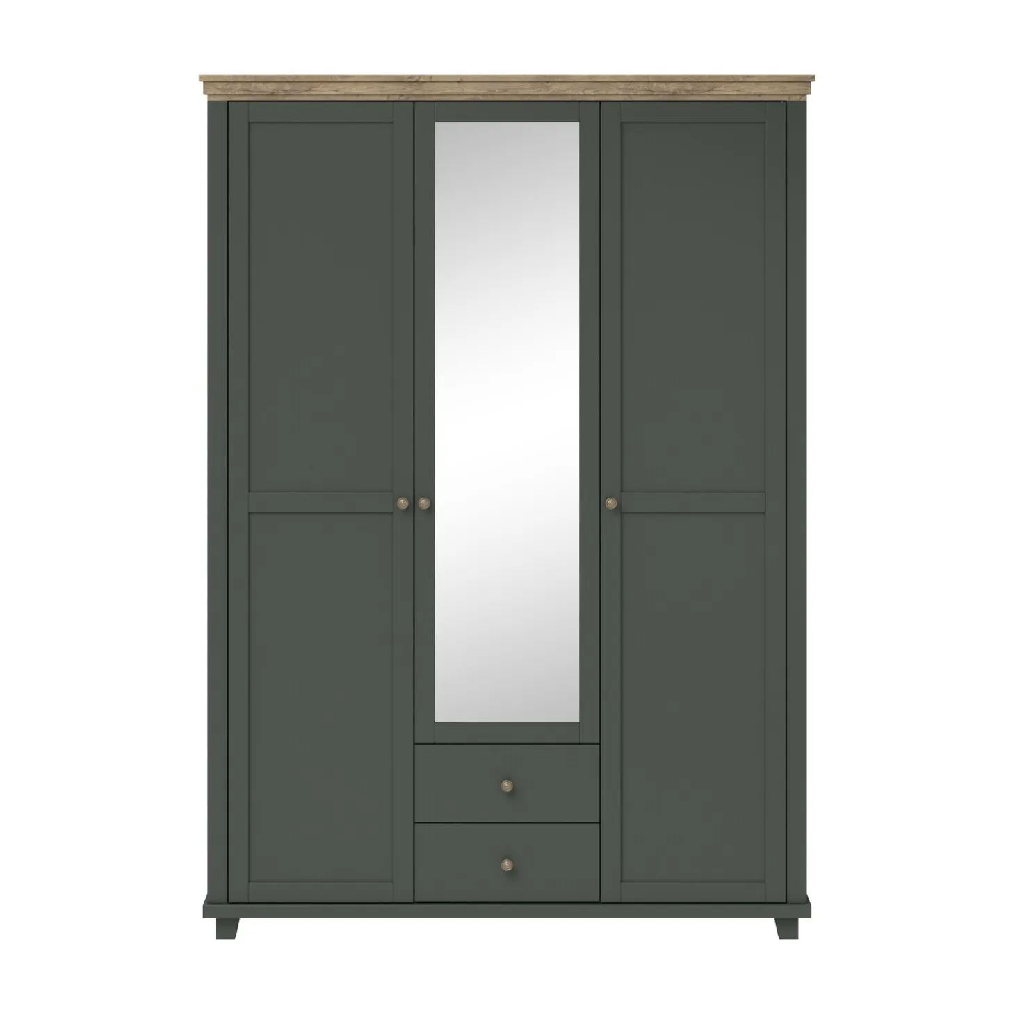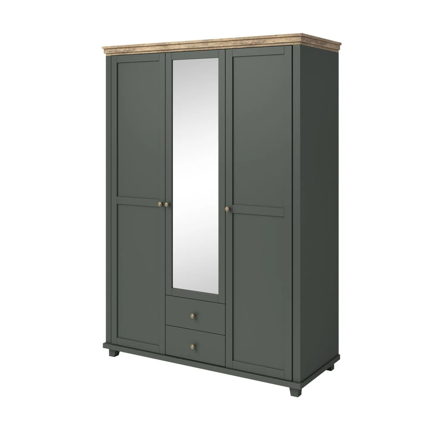 De Kledingkast Elvas 3-Deurs combineert stijlvol design met praktische opbergruimte. Uitgevoerd in een diepe donkergroene kleur met een warme houtlook bovenblad en elegante knopgrepen, straalt deze kast rust en klasse uit. Het landelijke ontwerp past perfect in zowel moderne als klassieke slaapkamers.