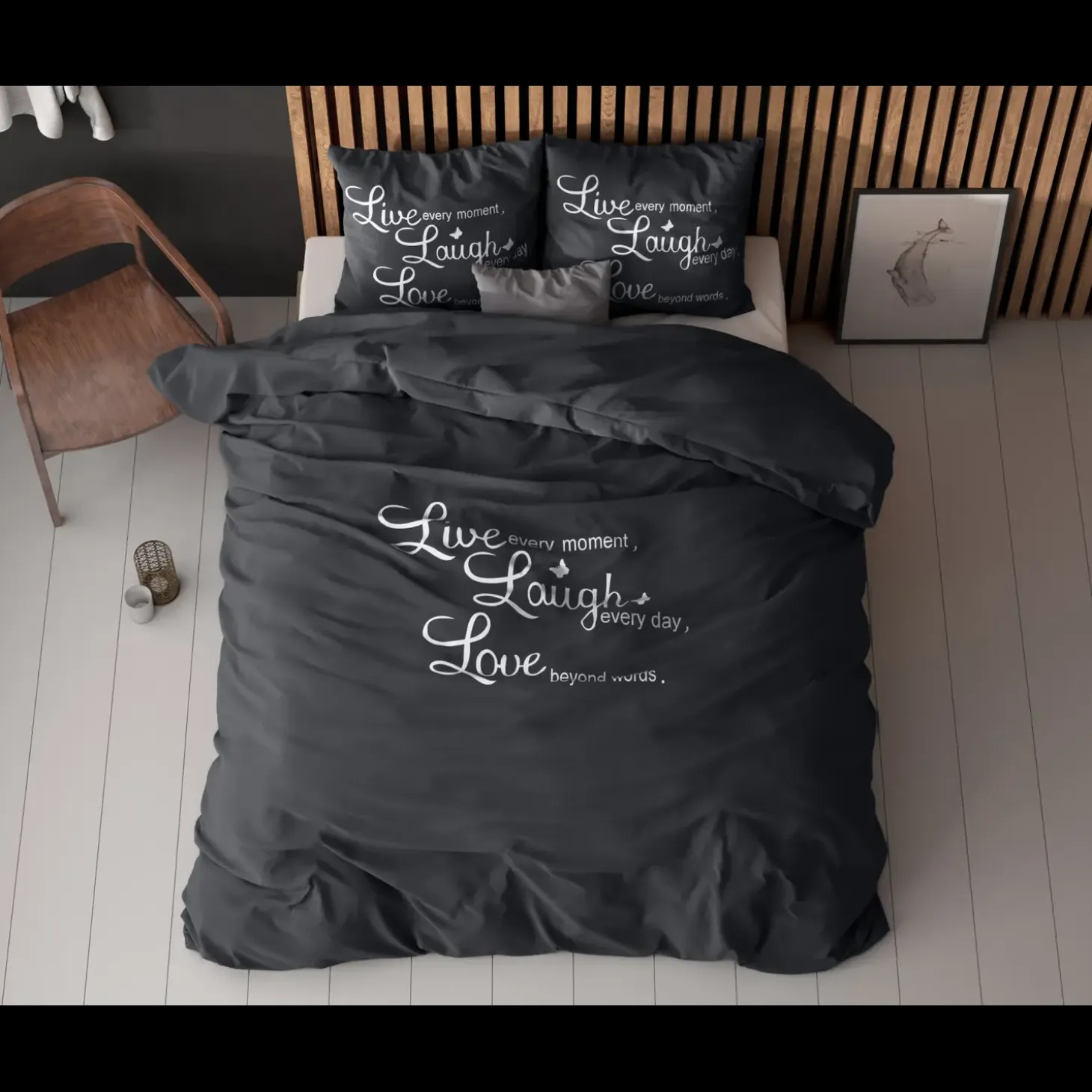 Word in stijl wakker en verfraai je slaapkamer met Welterusten, waar verfijnde esthetiek samensmelt met ongeëvenaard comfort. Deze tijdloze toevoeging aan je beddengoedcollectie biedt niet alleen een visueel feest met zijn haarscherpe digitale print, maar belooft ook een totale lengte van 220 cm, geschikt voor dekbedden van 200 en 220 cm lang.