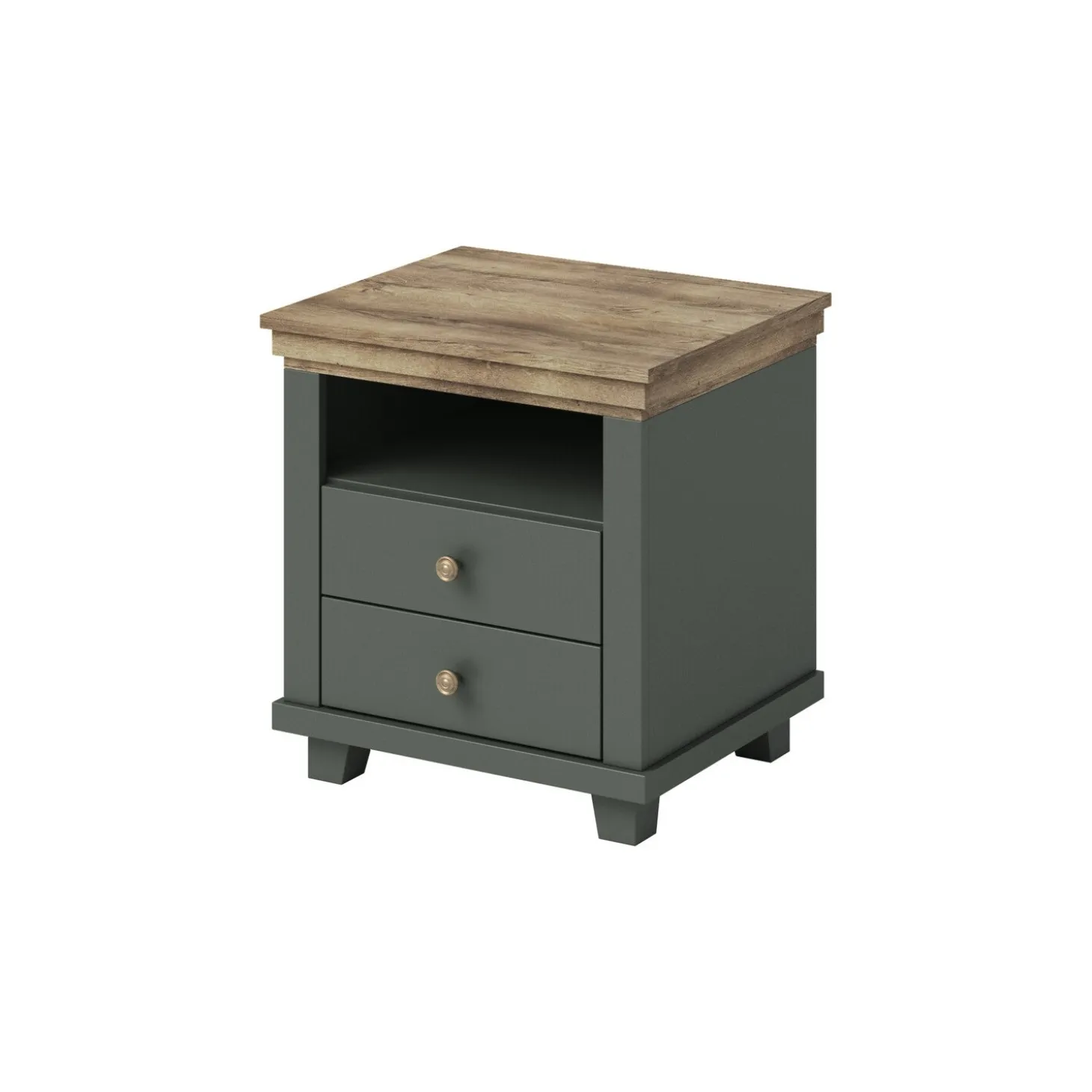 Het Nachtkastje Elvas combineert klassieke charme met een moderne twist. De donkergroene afwerking in combinatie met het warme houtkleurige blad geeft dit nachtkastje een stijlvolle en tijdloze uitstraling die perfect past in zowel landelijke als moderne slaapkamers.