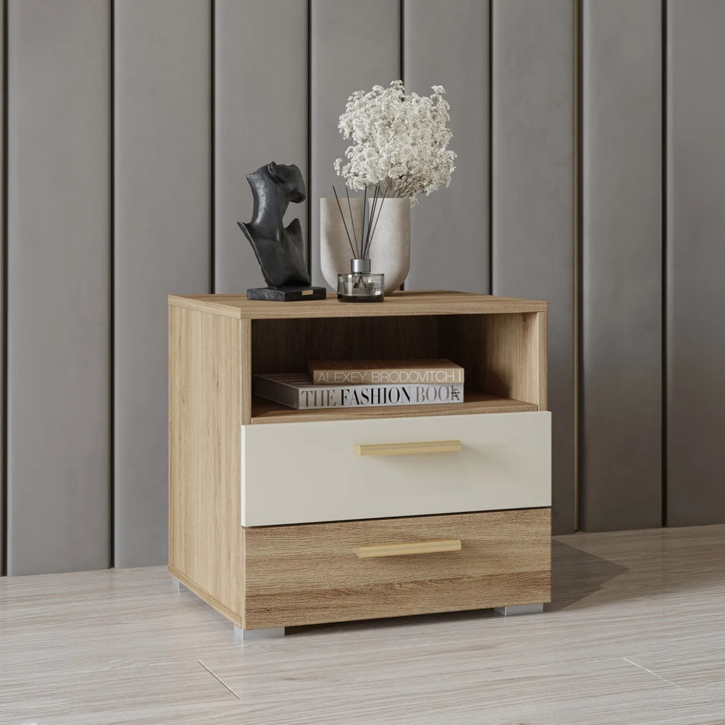 ✅ Twee lades en een open vak – praktisch voor al je slaapkamerbenodigdheden