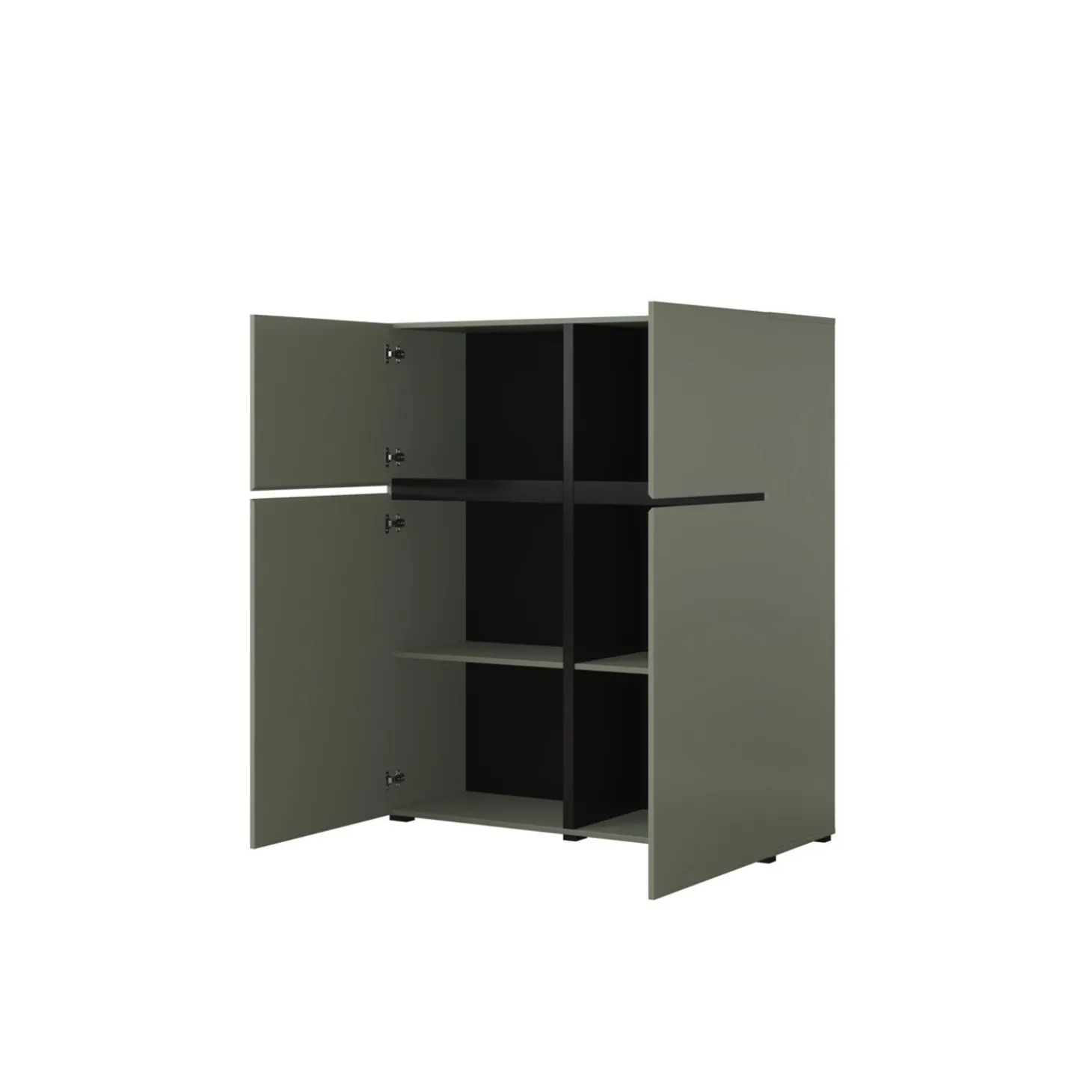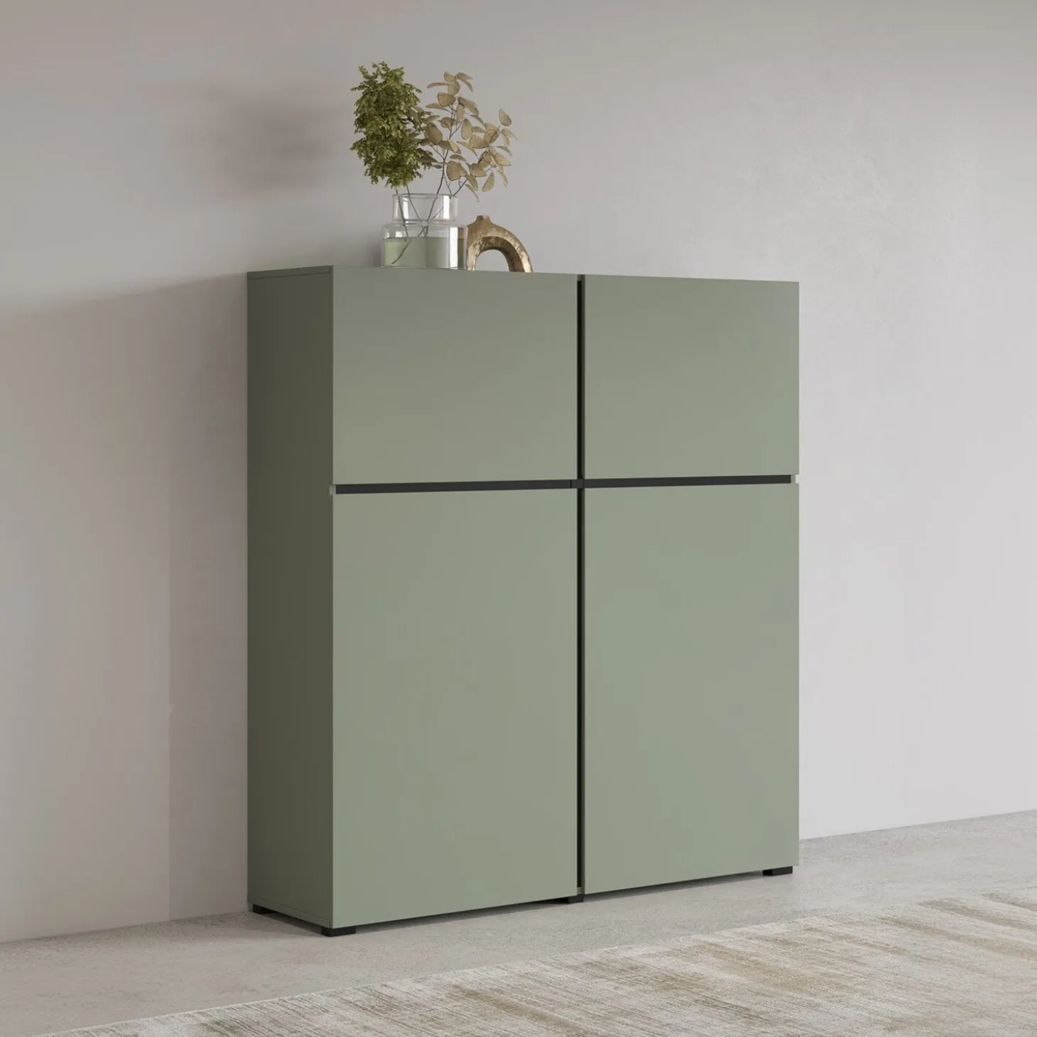 De opbergkast Crotone heeft een strak en modern ontwerp met een greeploos front en een rustige, symmetrische indeling. De vier deuren zorgen voor overzichtelijke opbergruimte, terwijl het minimalistische design zorgt voor een nette en tijdloze uitstraling.