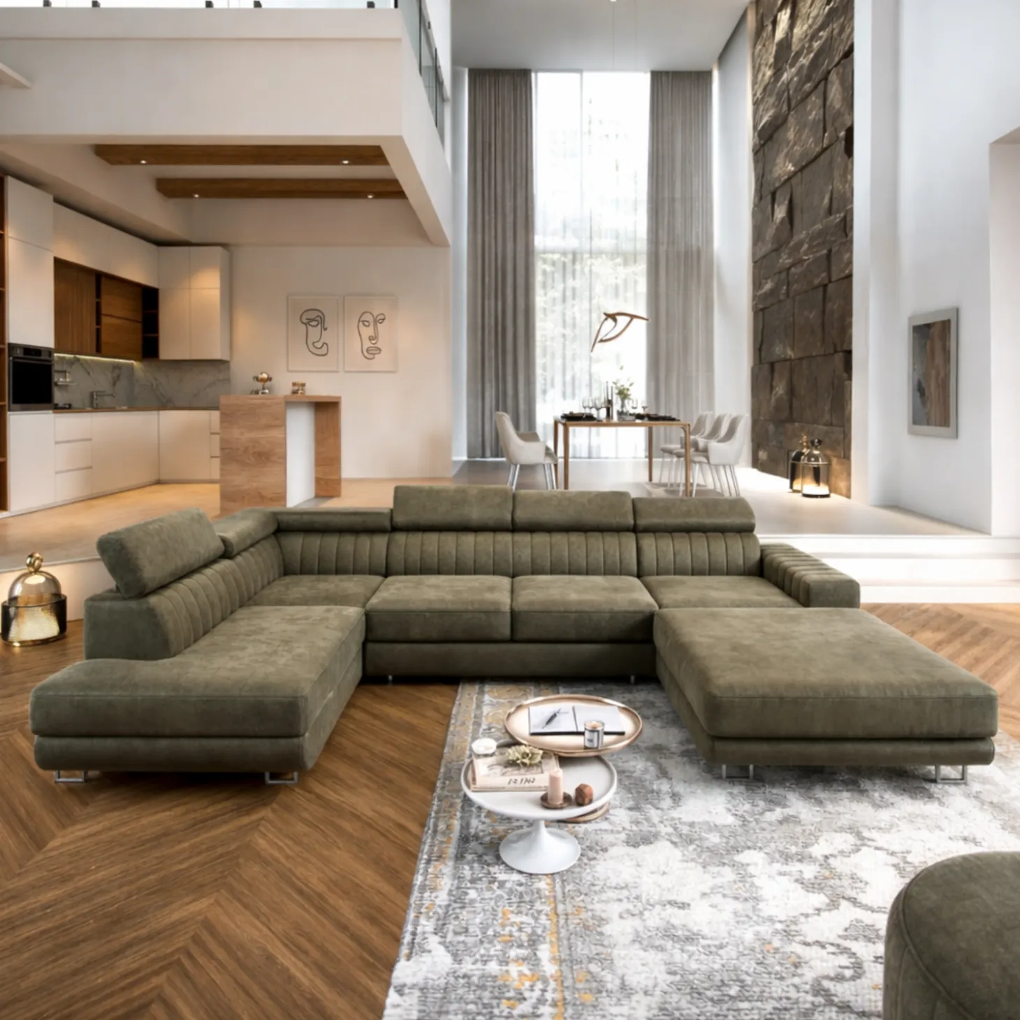 OP=OP Slaapbank met opbergruimte Nero | U-bank Rechts | Suede Mosgroen