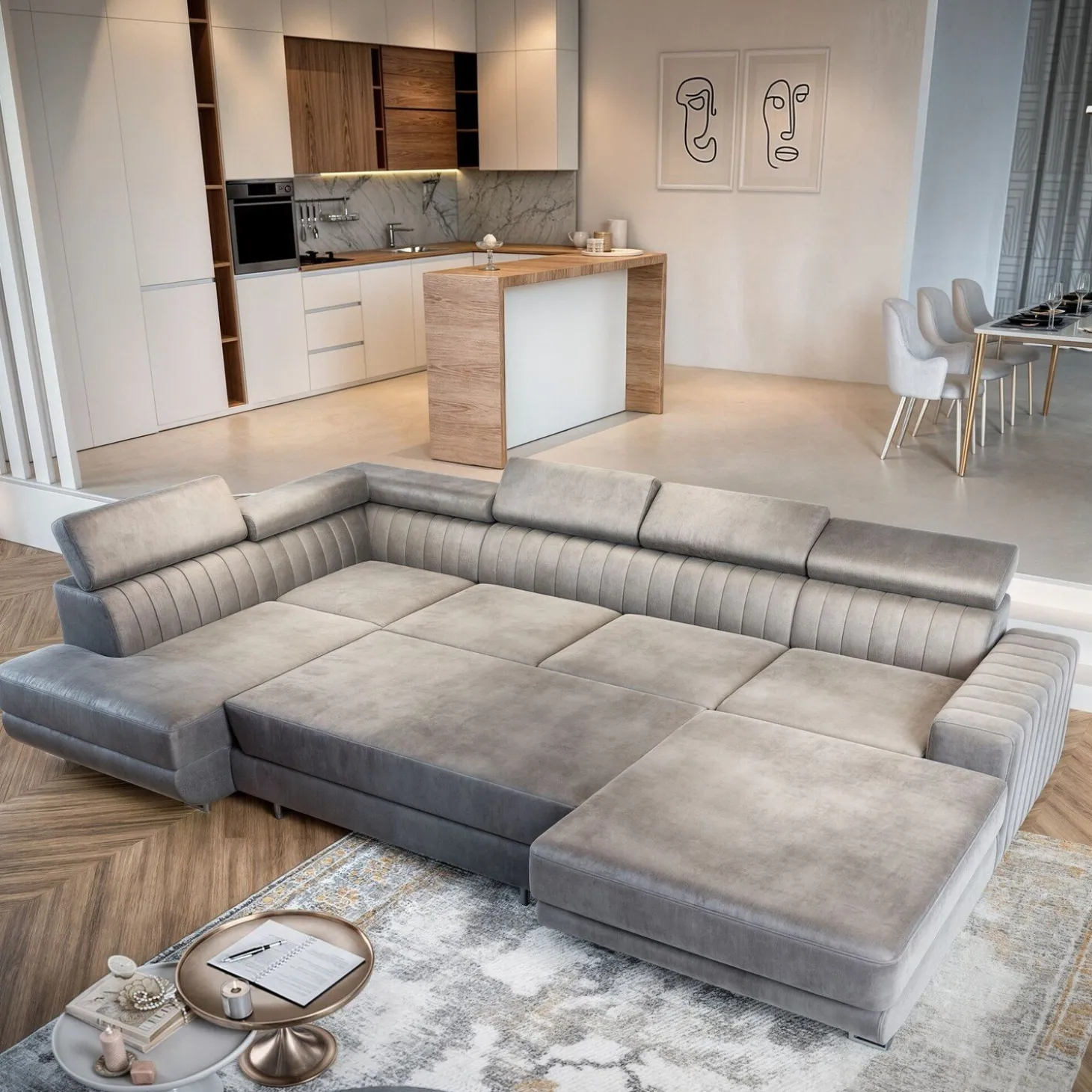 Uitschuifgedeelte is meegestoffeerd