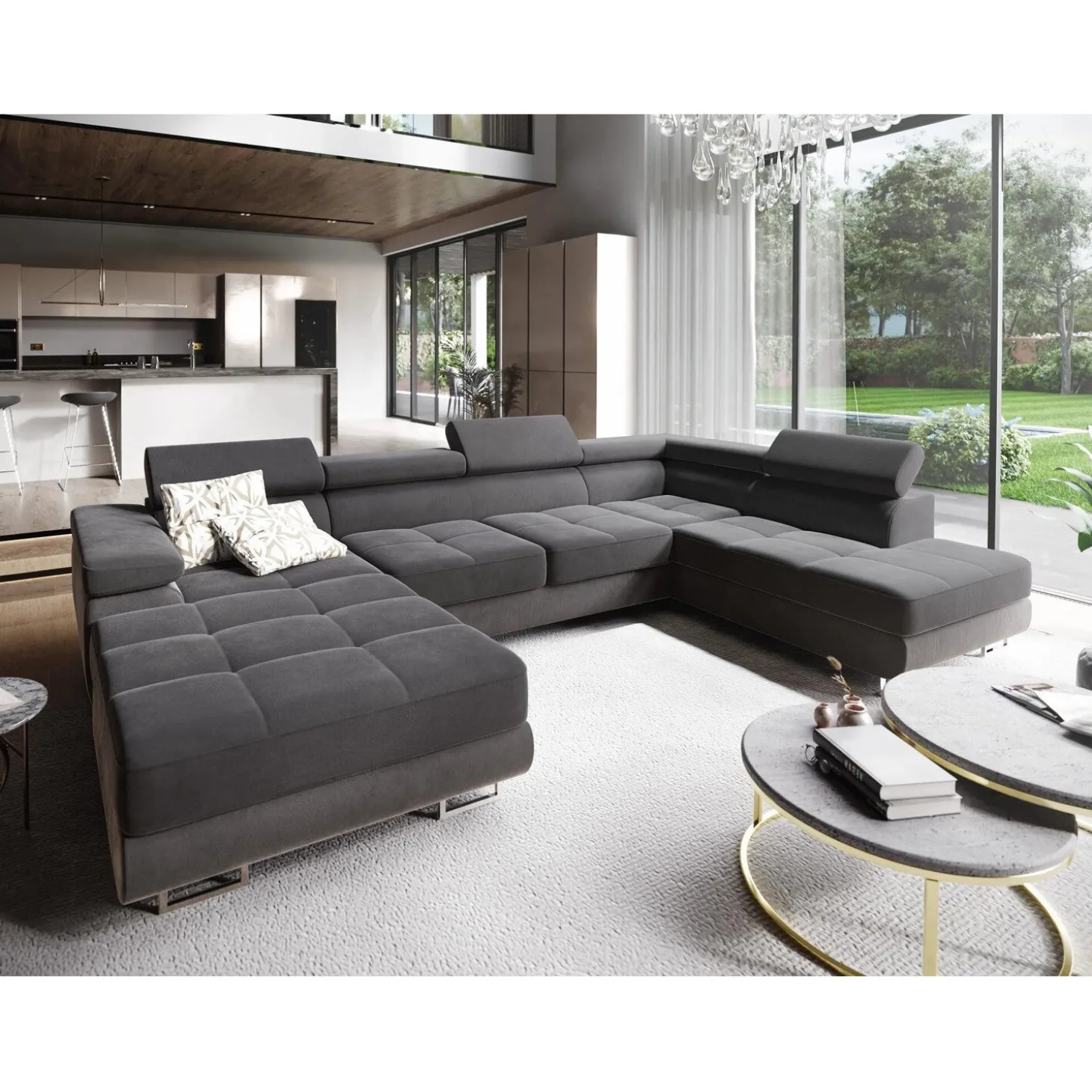 OP=OP Slaapbank met opbergruimte Sem | Rechts | U-bank XL – Velvet Grijs