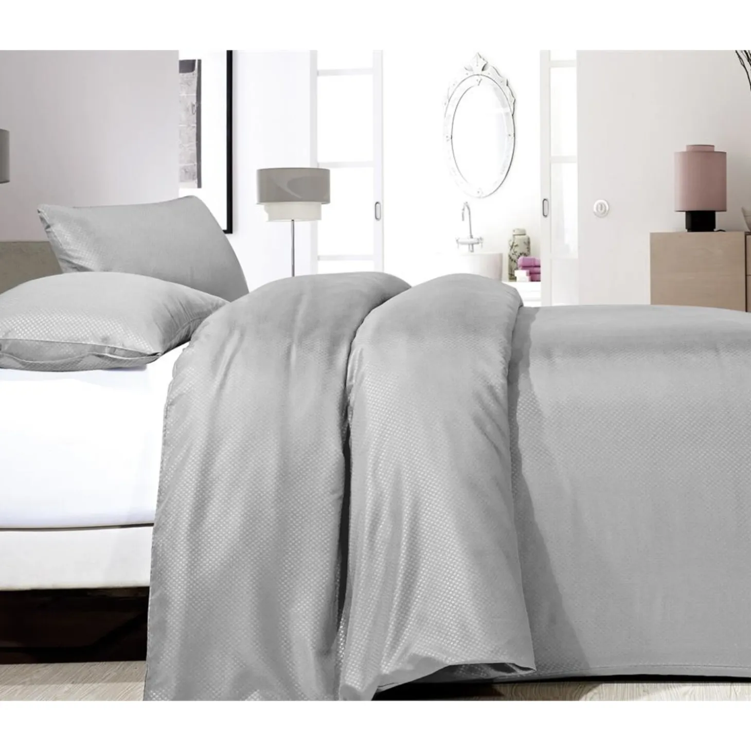 Het Satin Point Grey dekbedovertrek combineert de souplesse en elegantie van satijn geweven stof met de sterkte van robuust katoen door een vervaardiging uit 100% micropercal. Geef uw slaapkamer een boost door middel van dit comfortabele en chique dekbedovertrek! Verkrijgbaar in de volgende maten: