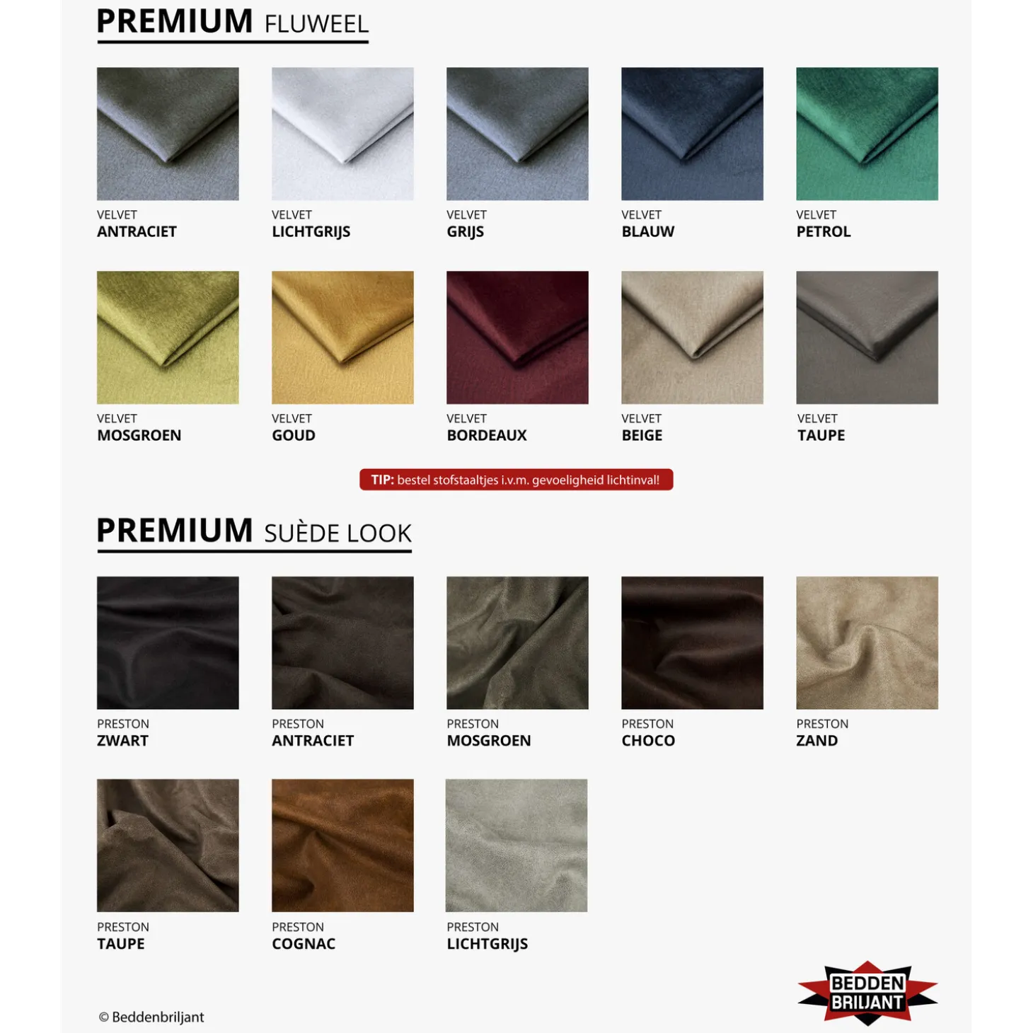 Stof/Kleur: Hoek- Slaapbank met opbergruimte Kos is snel leverbaar in 5 verschillende stof/kleuren welke hier besteld kunnen worden om de daadwerkelijke kleur en gevoel over te kunnen brengen: