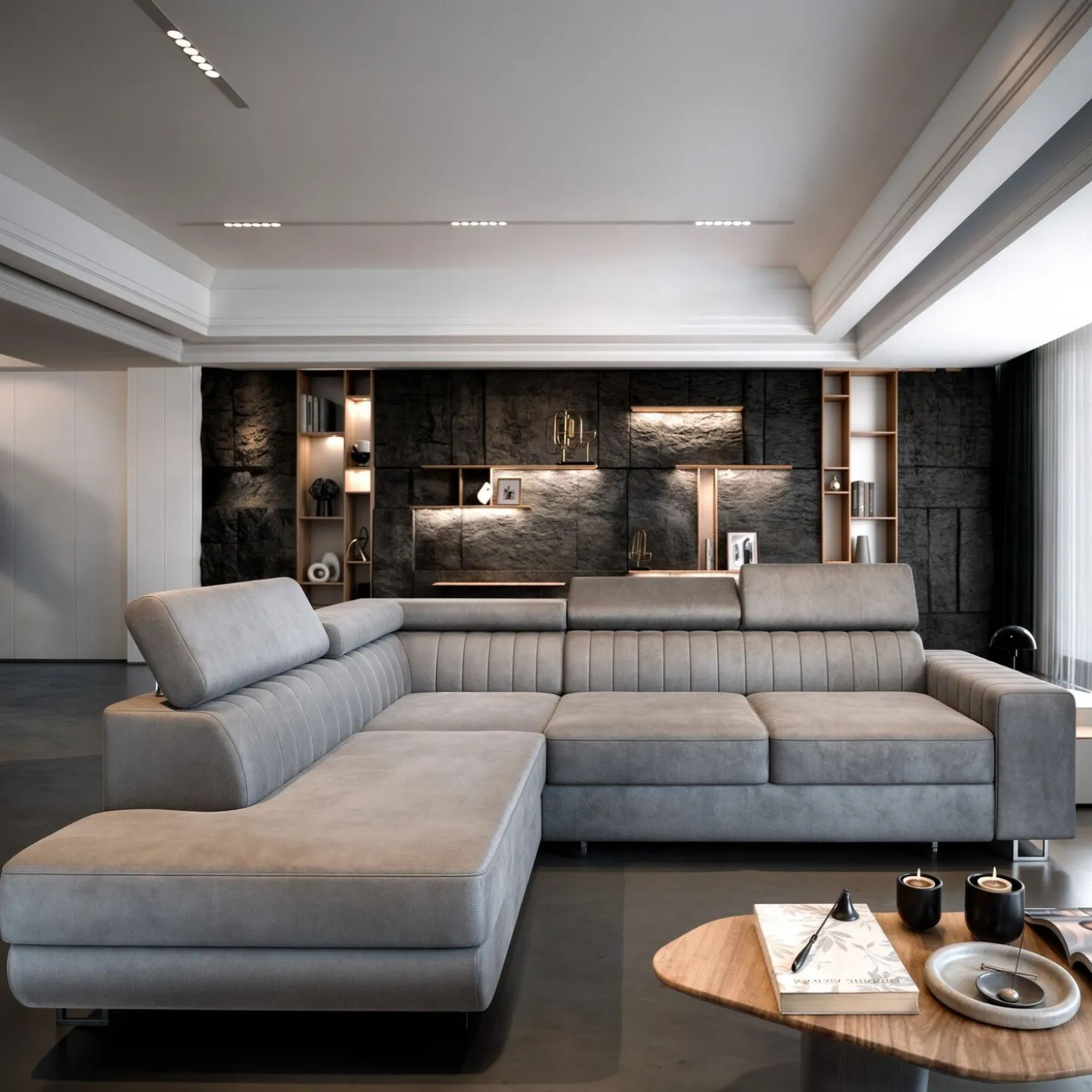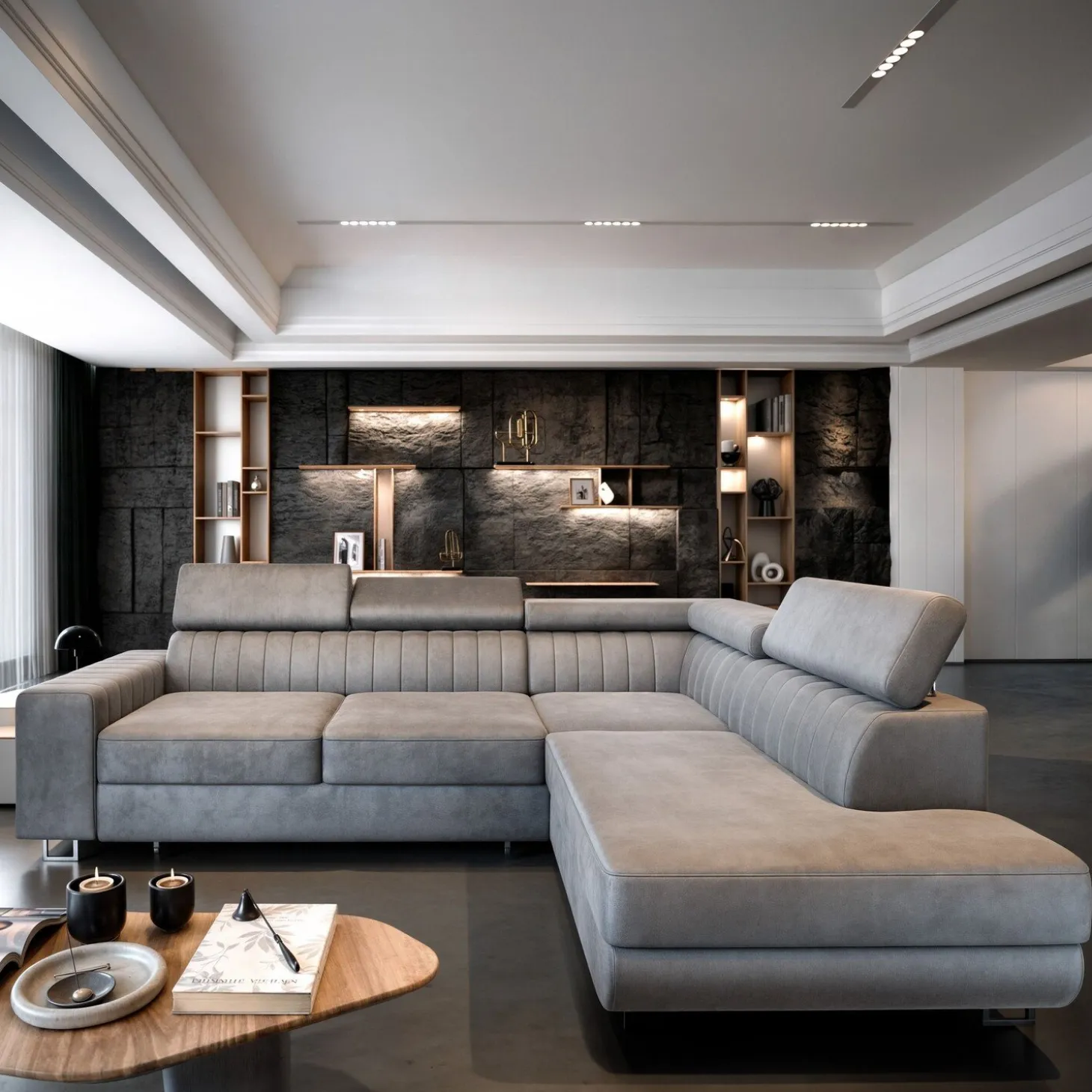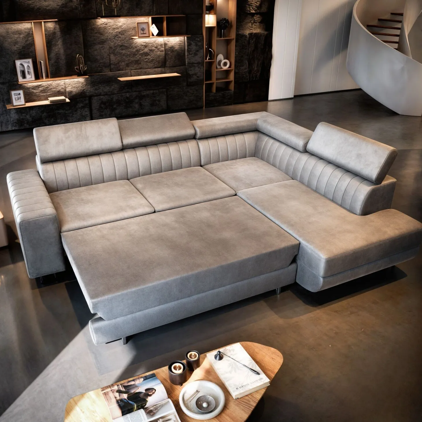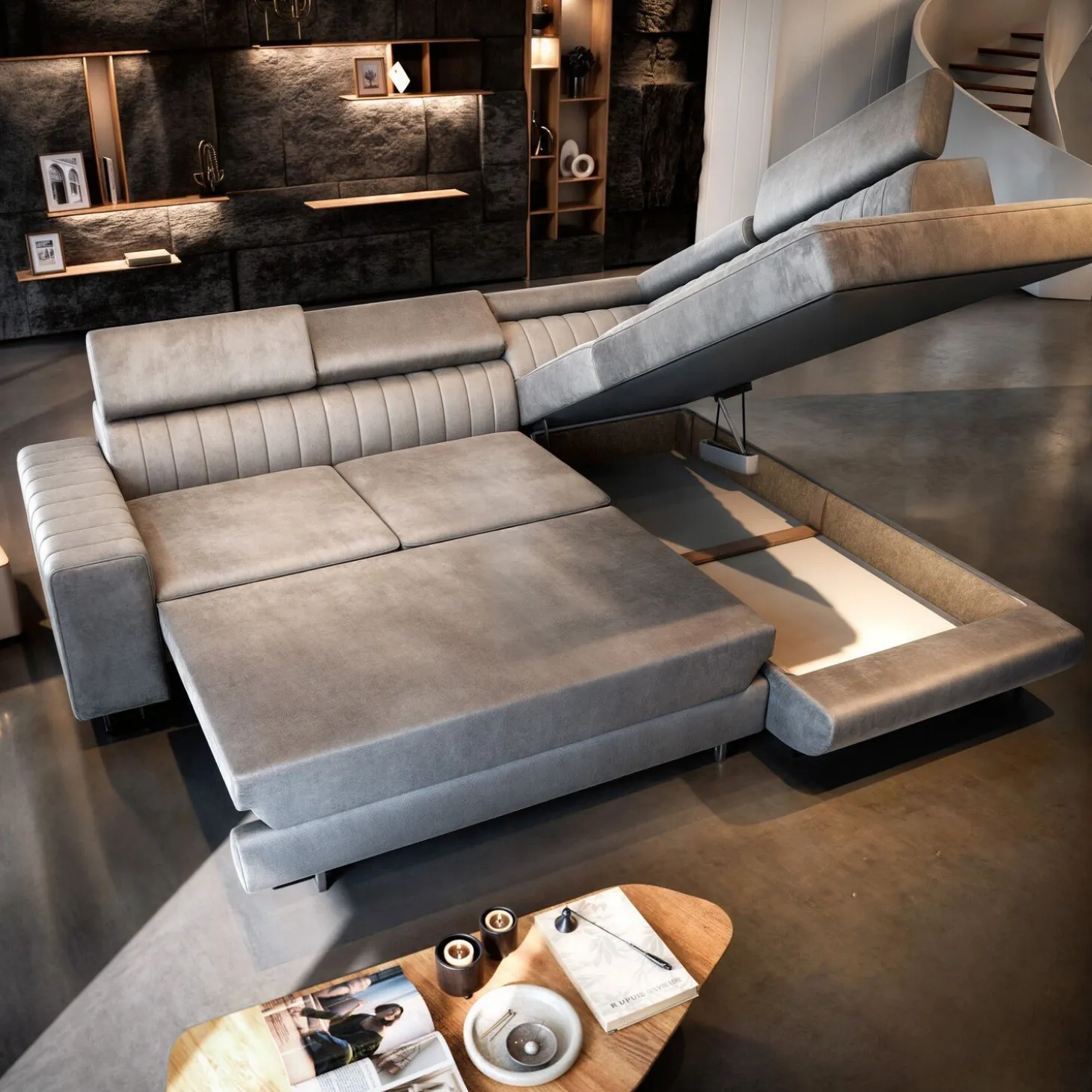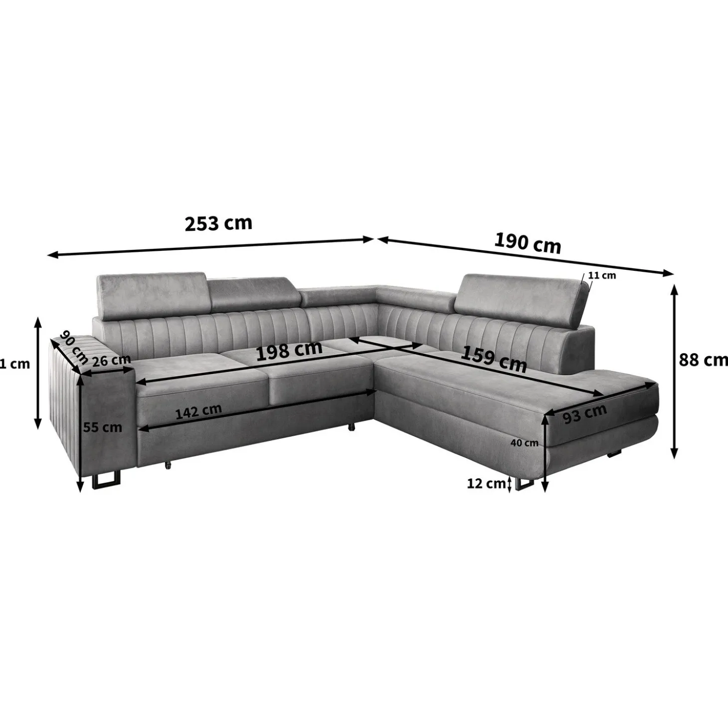 Slaapbank met opbergruimte Nero is een verfijnde en praktische toevoeging aan jouw interieur! Deze hoekbank kan eenvoudig worden omgevormd tot een comfortabele slaapplek. Dankzij zijn opvallende ontwerp is deze bank aan te passen aan de specifieke eisen van je ruimte. Met de ingebouwde opbergmogelijkheden kun je bijvoorbeeld je beddengoed netjes opbergen.