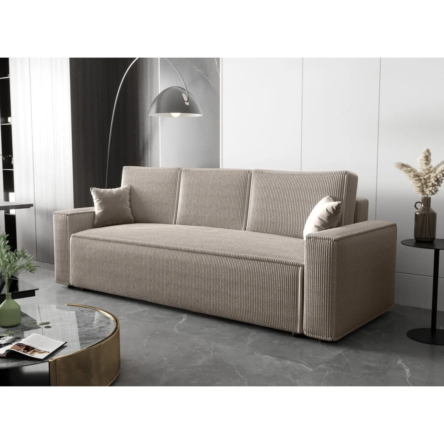 De slaapbank met opbergruimte Pom combineert stijl en functionaliteit in één meubel. Overdag gebruik je hem als comfortabele zitbank en ’s avonds klap je hem eenvoudig uit tot een volwaardige slaapbank. Dankzij het slimme ontwerp past de Pom moeiteloos in verschillende interieurs en biedt hij direct extra gemak. De geïntegreerde opbergruimte is ideaal voor het netjes opbergen van beddengoed, kussens of andere spullen.