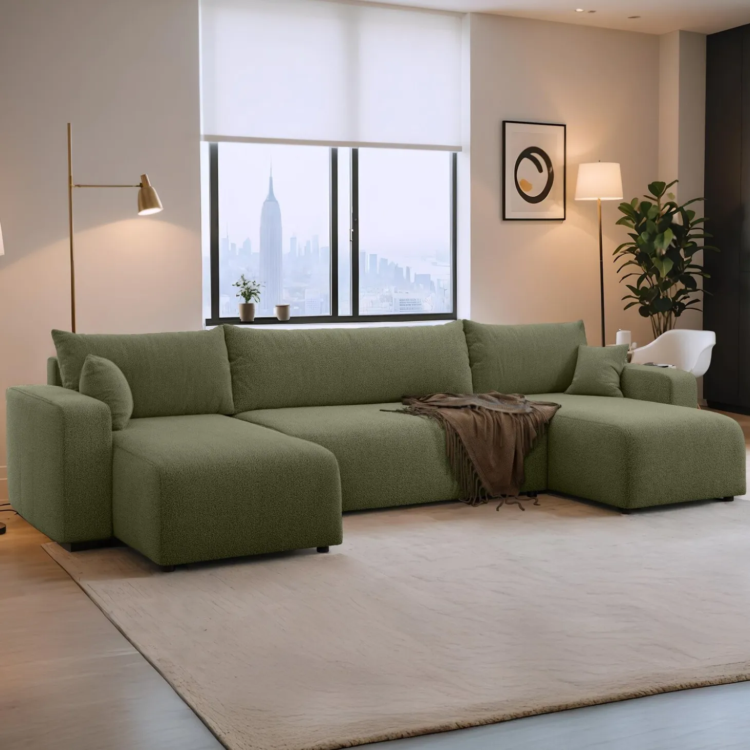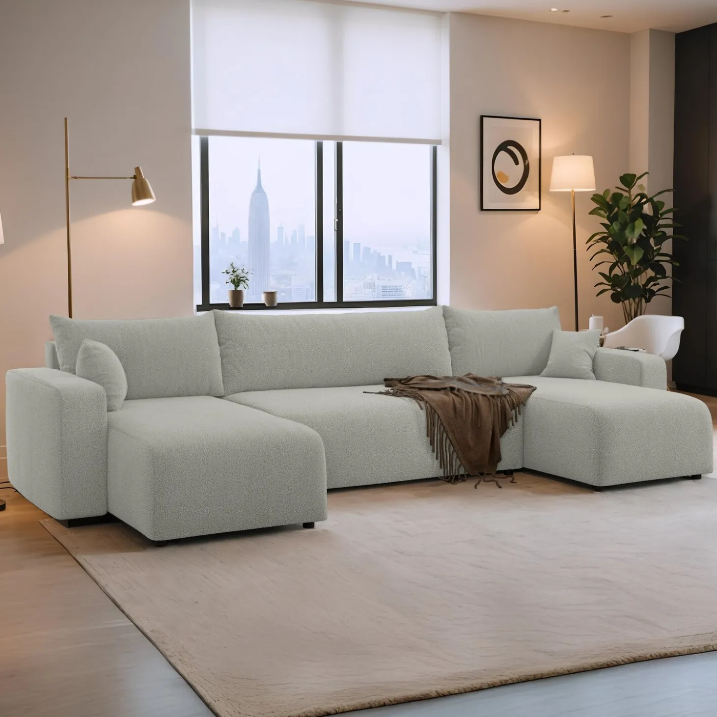 Creëer een knusse en slimme leefruimte met de Teddy stof Pim U‑bank. Zijn zachte teddy-stof en royale zitruimte maken hem perfect voor ontspanning, gasten en slimme opbergopties.