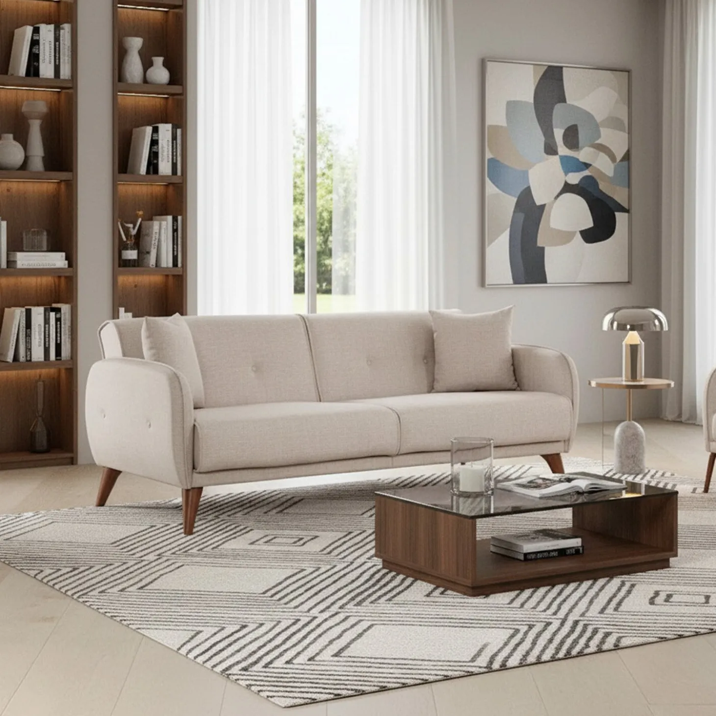 Ontdek sofabed Roswell, een comfortabel en stijlvol model dat jouw woonkamer een warme en uitnodigende uitstraling geeft. De afgeronde armleuningen, zachte rugkussens en lichte stoffering brengen rust in de ruimte. Door de compacte bouw past Roswell goed in uiteenlopende woonstijlen en biedt het een fijne zitervaring voor dagelijks gebruik. Ideaal wanneer je extra slaapruimte wilt creëren zonder in te leveren op uitstraling of comfort.