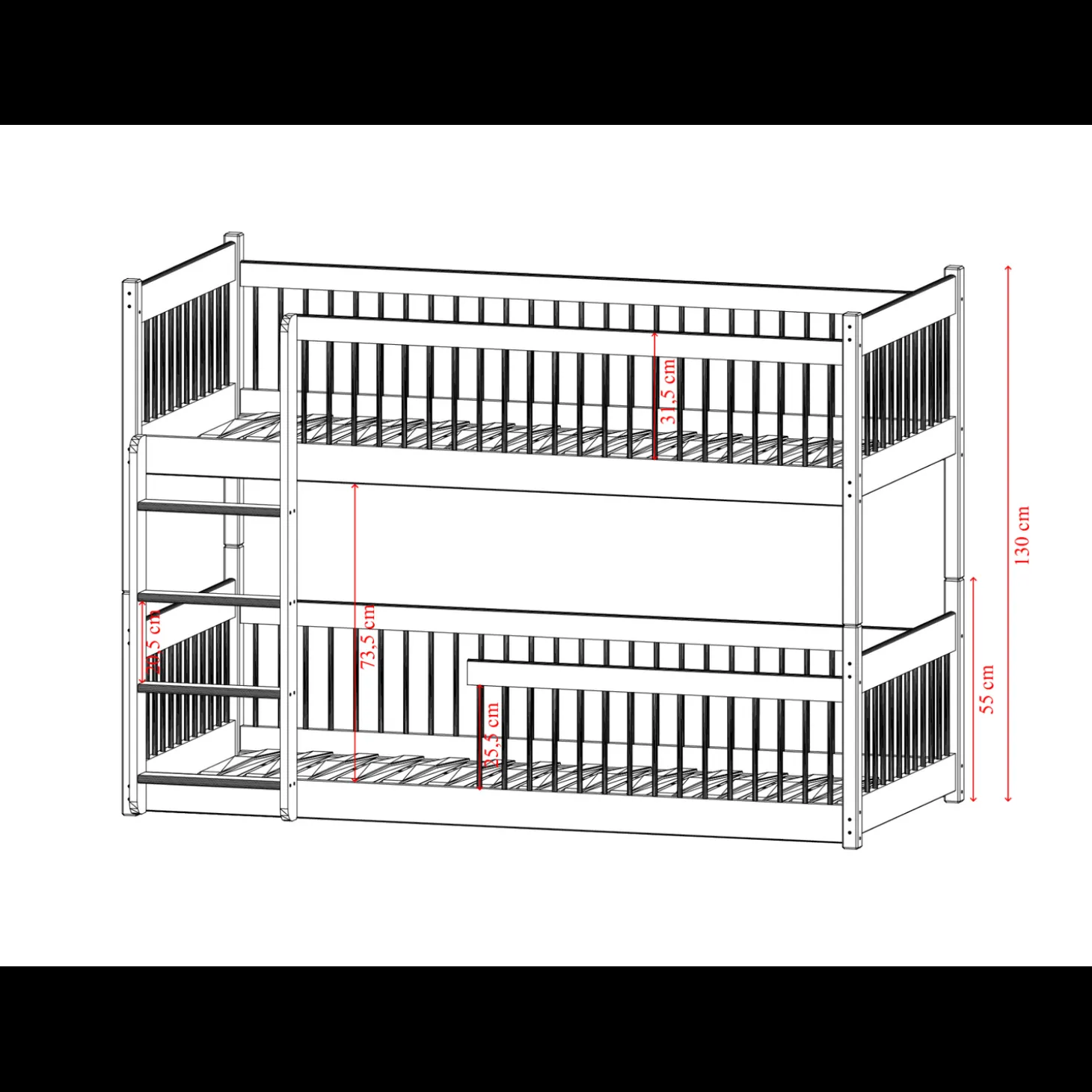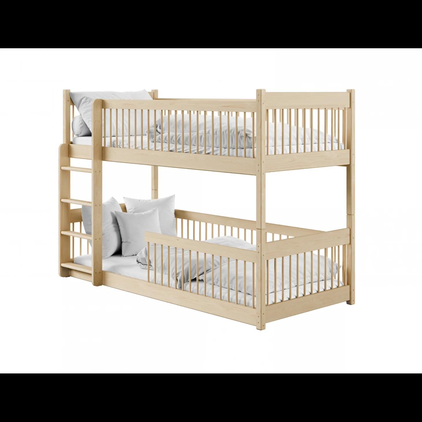 Het stapelbed Bram heeft een warme en natuurlijke uitstraling met een stevig houten frame en fijne verticale spijlen. De twee slaaplagen zijn overzichtelijk opgebouwd en bieden een veilige en comfortabele slaapplek. Door het open ontwerp blijft het bed luchtig ogen, terwijl de solide constructie zorgt voor stabiliteit en duurzaamheid.