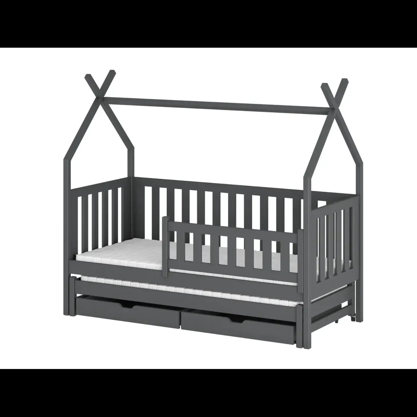 Het Tipibed Taco is een droomplek voor ieder kind. Het speelse frame met vier staanders is perfect om te versieren met een stoffen hemel, klamboe of lichtsnoer, waardoor er een knusse en gezellige sfeer ontstaat. Dit model biedt daarnaast slimme extra’s: een uittrekbaar deel voor een extra matras, ideaal voor logeerpartijtjes, én twee ruime lades voor het opbergen van speelgoed, beddengoed of andere spulletjes. Zo combineert het Tipibed Taco fantasierijk slapen met praktische opbergruimte en een stevig ontwerp – perfect voor een veilige en sfeervolle kinderkamer.