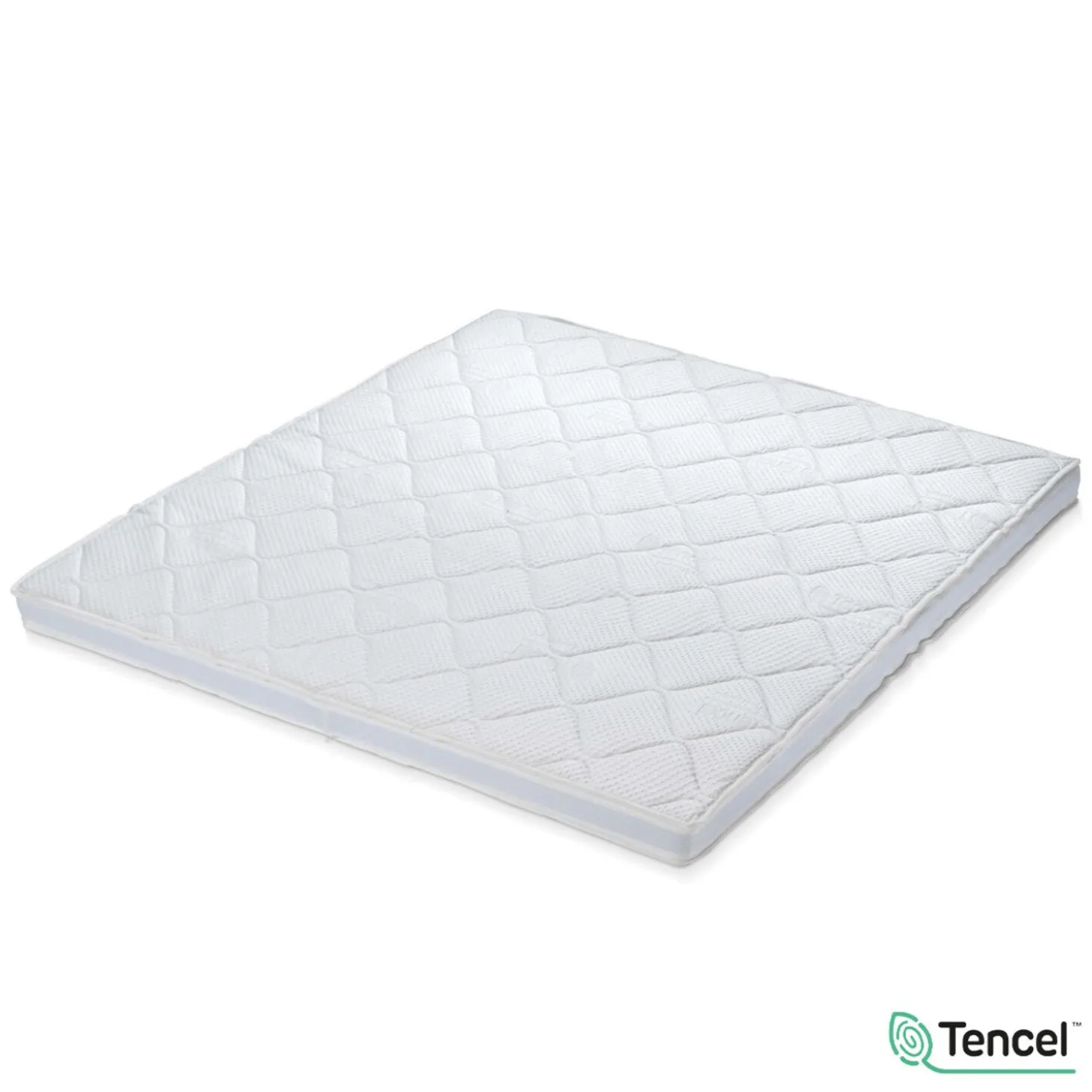 De Tencel hoes is gemaakt van natuurlijke houtvezels die zacht aanvoelen én sterk presteren. Tencel is van nature antibacterieel, voert vocht snel af en reguleert de temperatuur uitstekend. In combinatie met de 3D ventilatieband rondom blijft dit topmatras dag en nacht fris en comfortabel. De hoes is volledig afritsbaar en wasbaar op 30°C – hygiëne gegarandeerd.