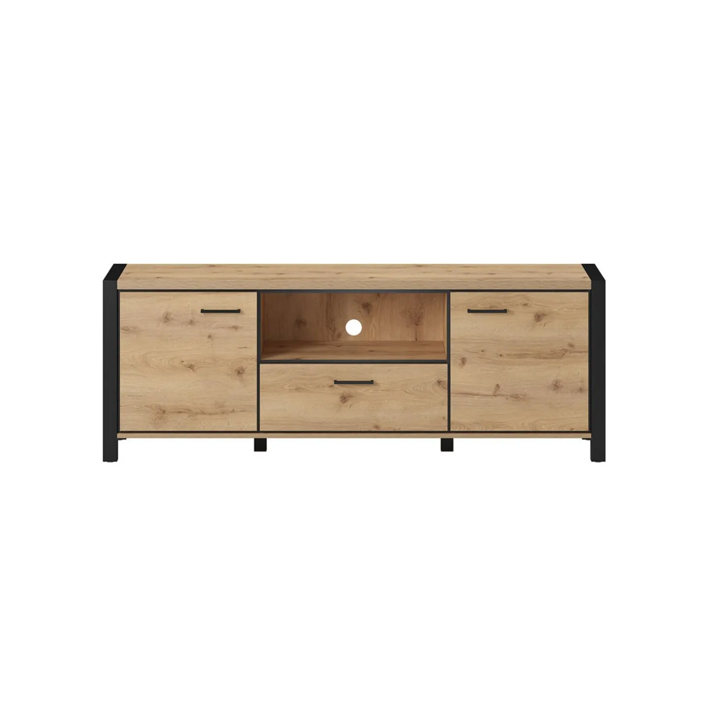 Dankzij de doordachte indeling biedt dit tv meubel overzicht en functionaliteit zonder in te leveren op uitstraling. De duidelijke lijnen en stevige omlijsting maken het een sterke basis voor een moderne of industriele woonstijl.