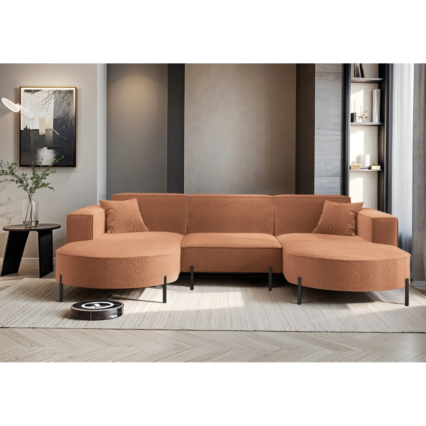 De U-Bank Hills valt direct op door zijn afgeronde vormen en rustige uitstraling. De brede zitelementen en zachte lijnen zorgen voor een ontspannen geheel dat prettig oogt in zowel moderne als warme interieurs. De afgeronde loungegedeeltes geven de bank een speels accent, terwijl de rechte rugleuningen zorgen voor structuur en balans in het ontwerp. Dankzij de U-opstelling is er volop zitruimte voor dagelijks gebruik en lange avonden samen. De diepe zit maakt loungen comfortabel en nodigt uit om ontspannen plaats te nemen zonder dat de bank overheersend aanvoelt.