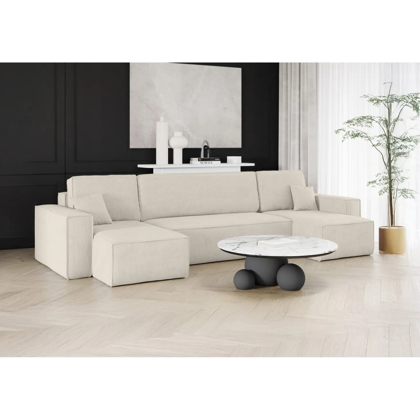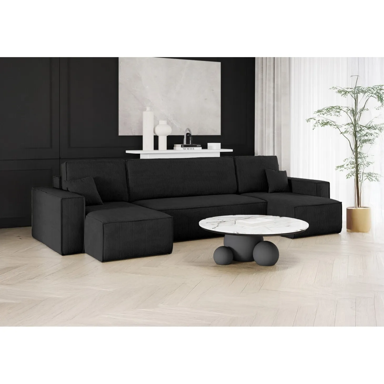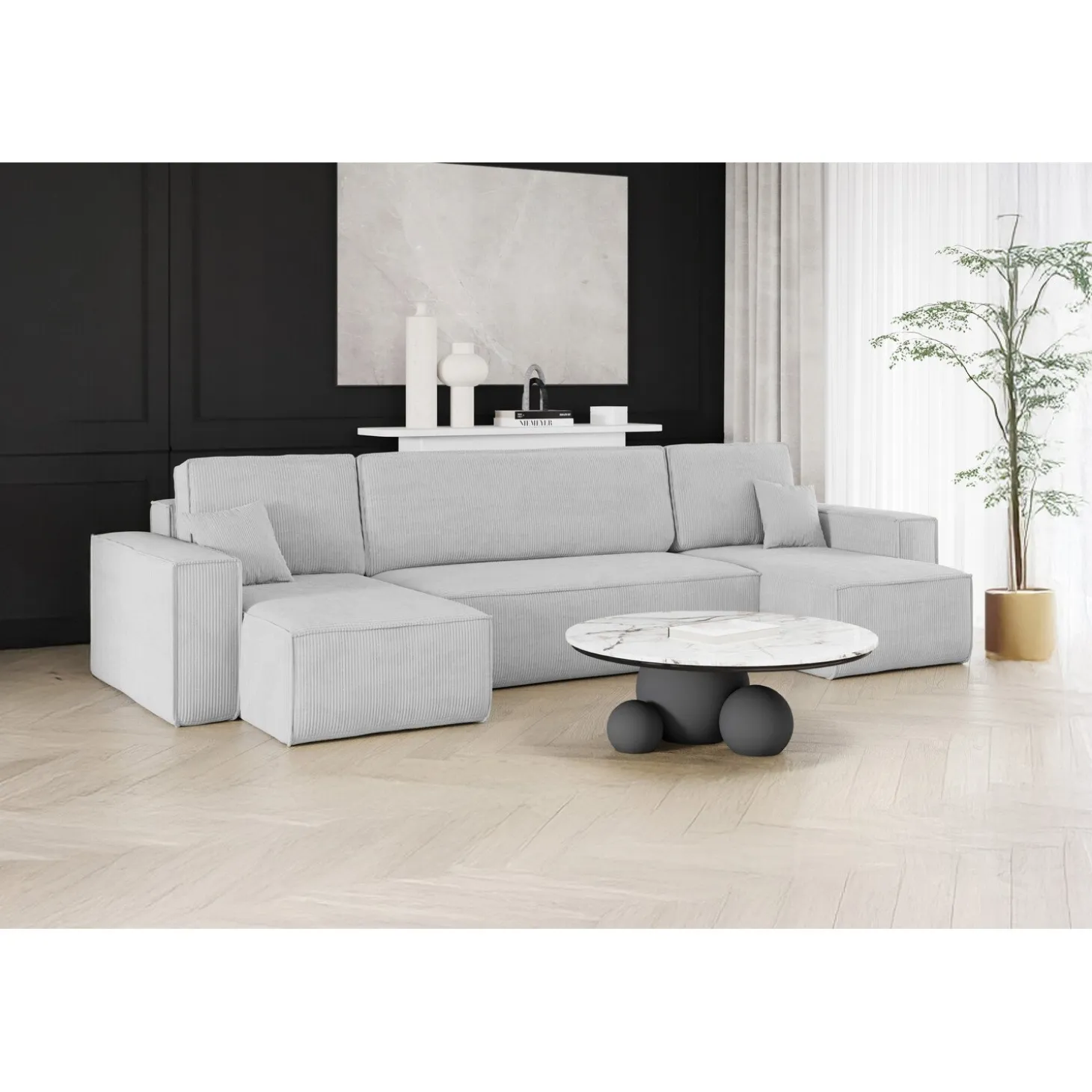 De U-bank Karlo is de perfecte keuze voor wie comfort, stijl en functionaliteit wil combineren. Overdag biedt de royale U-vormige opstelling volop zitruimte voor het hele gezin, terwijl je de bank ’s avonds eenvoudig omtovert tot een volwaardig bed. Ideaal voor logees of als slimme oplossing in woonruimtes waar je het maximale uit de ruimte wilt halen.