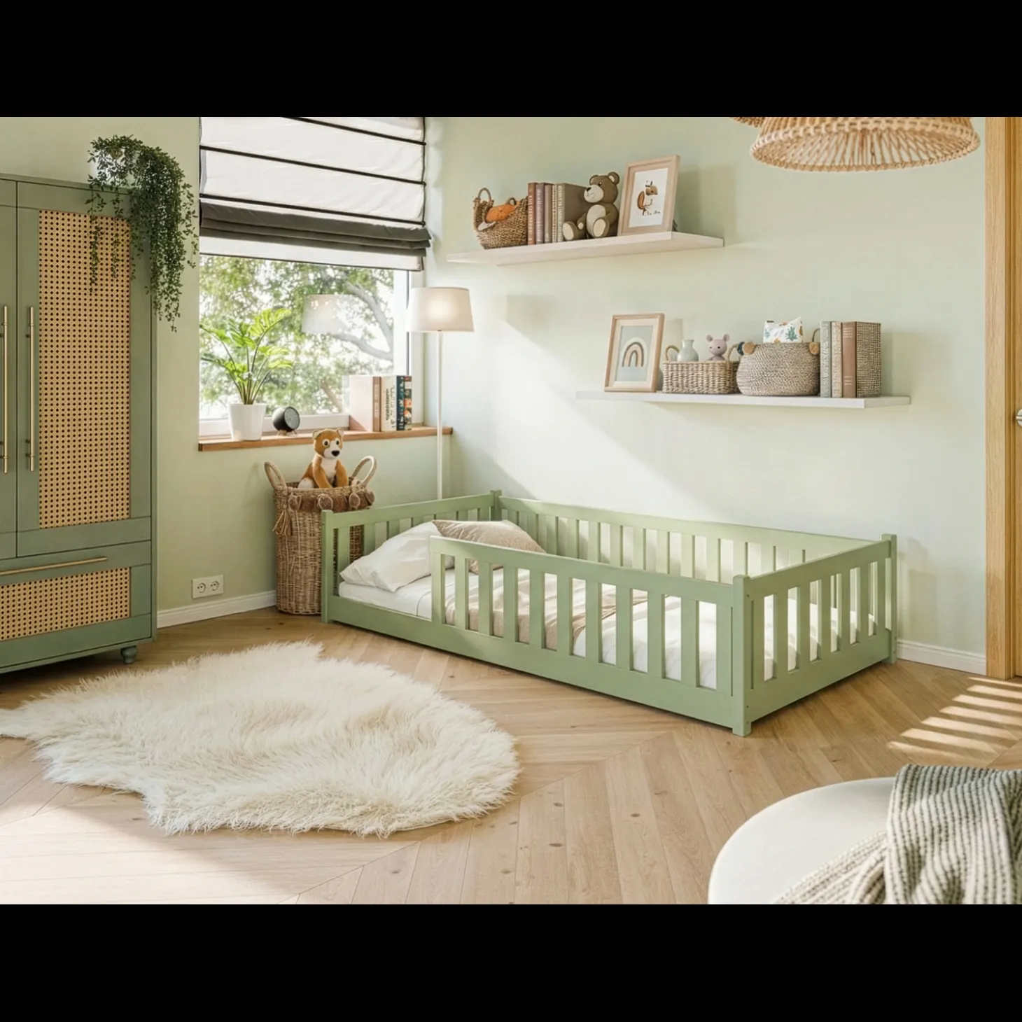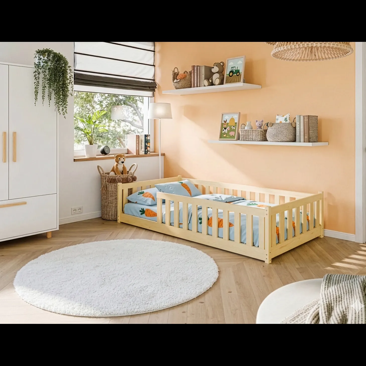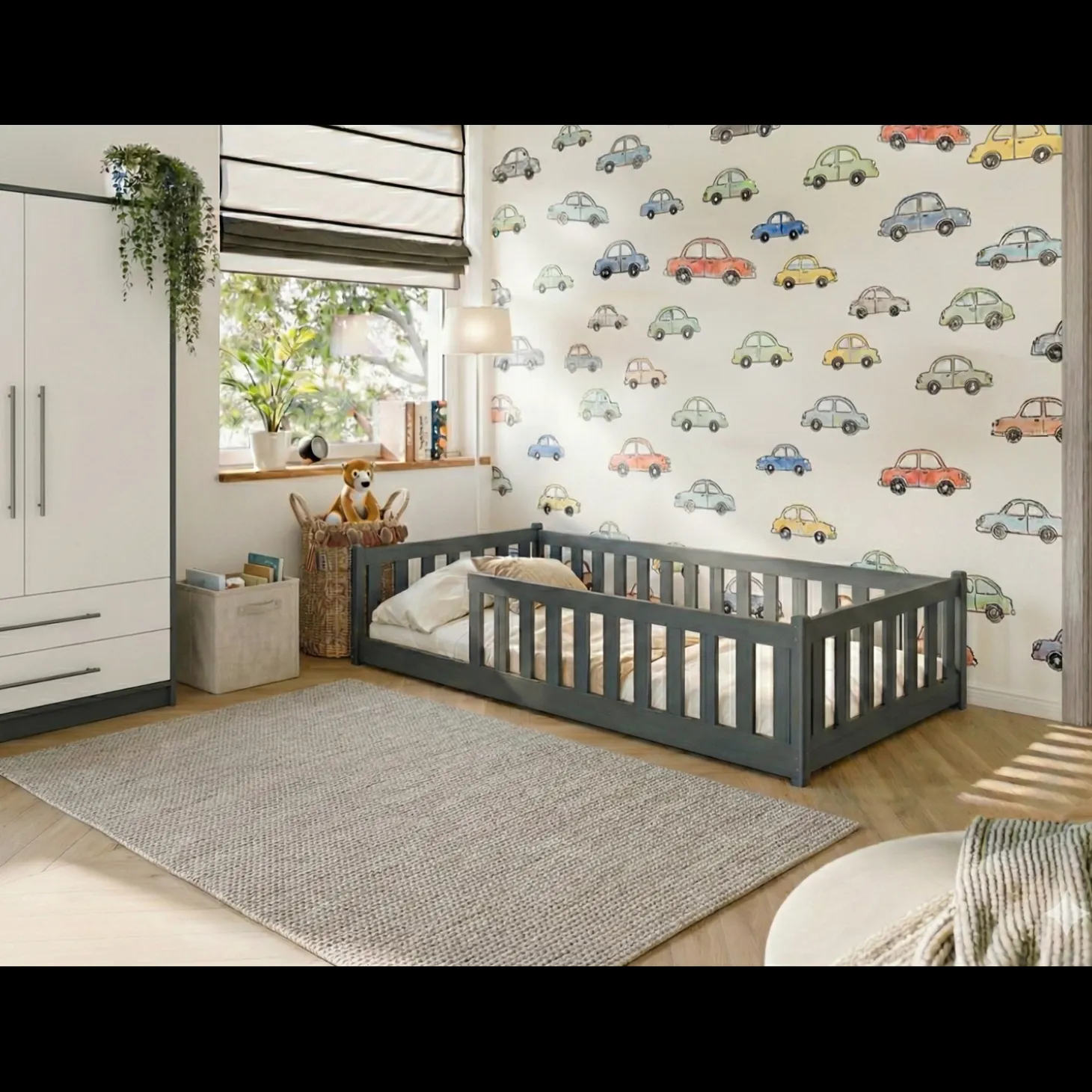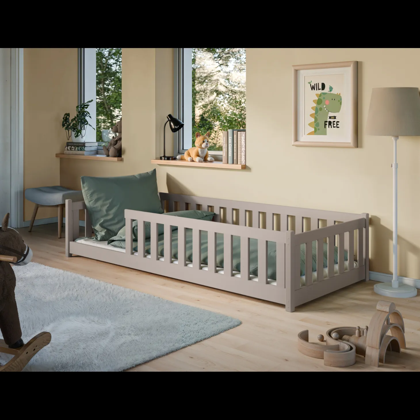 Vloerbed Owen is speciaal ontworpen met een laag instapontwerp, zodat kinderen zelfstandig en veilig in en uit bed kunnen stappen. Ideaal voor peuters en kleuters, doordat het dicht bij de vloer staat en geen valhoogte heeft.