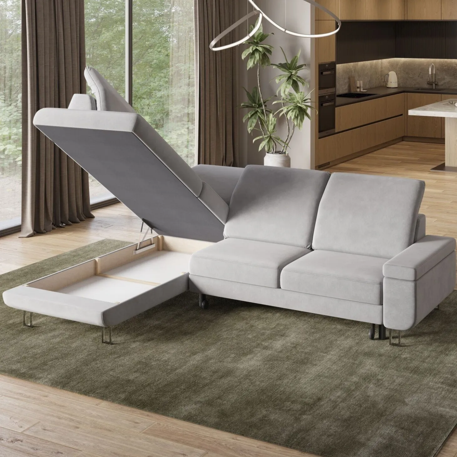 2dekans Showmodel Slaapbank Lex met opbergruimte en verstelbare hoofdsteunen | Hoekbank Teddy Beige – Rechts (Niet in originele verpakking en i.z.g.st.)