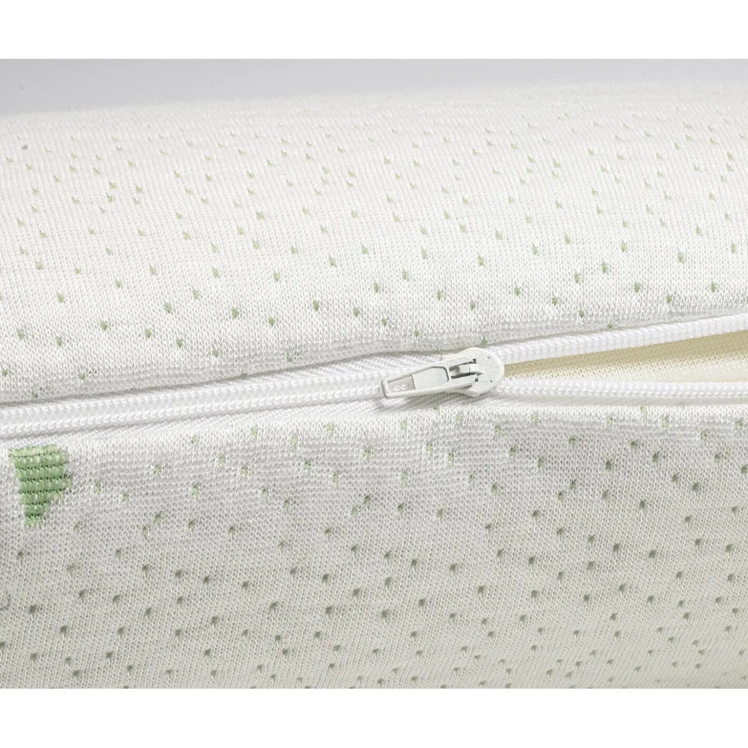 De hoes van dit kussen is gemaakt van dubbel jacquard gebreide stof van 240 gsm. Daarnaast heeft het ook bamboebehandeling. De binnenhoes is van 100% polyesterjersey van 90 gsm en de vulling van een 100% viscogeltraagschuimblok.