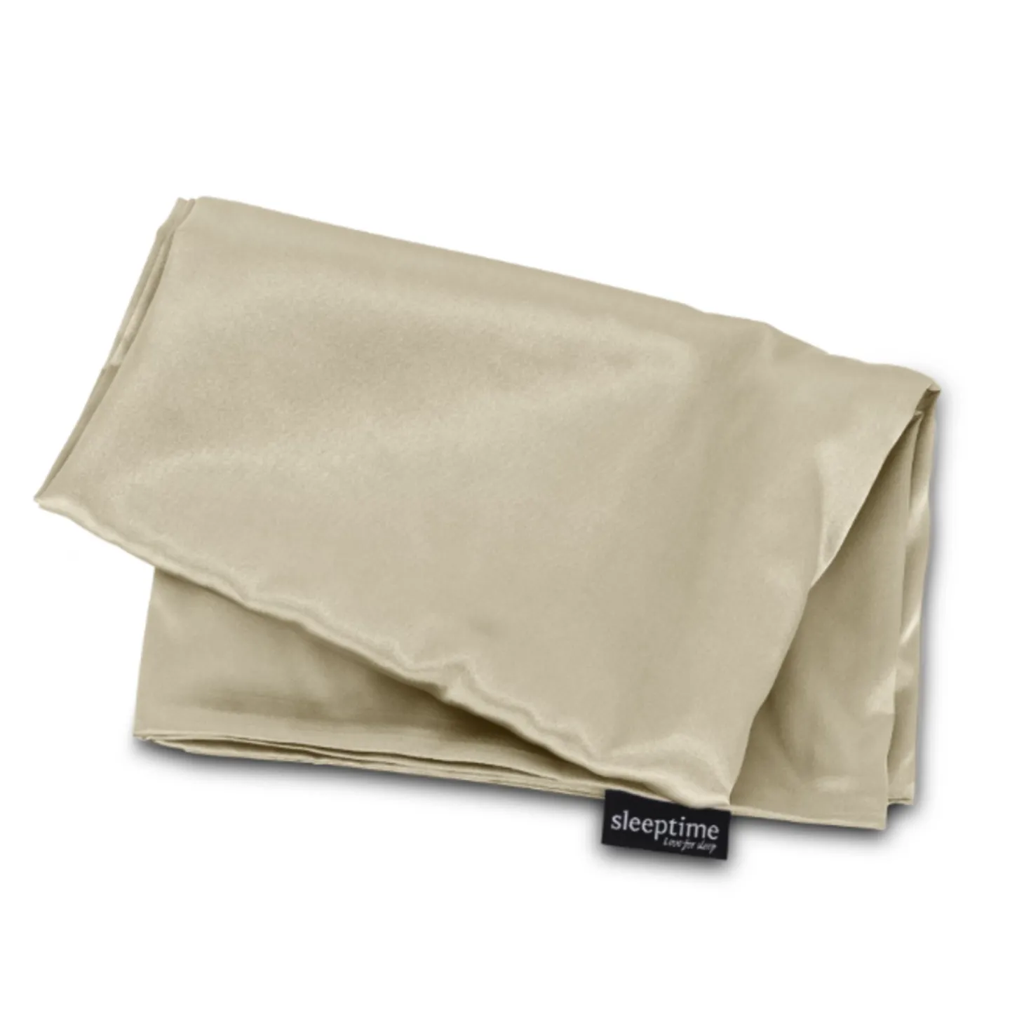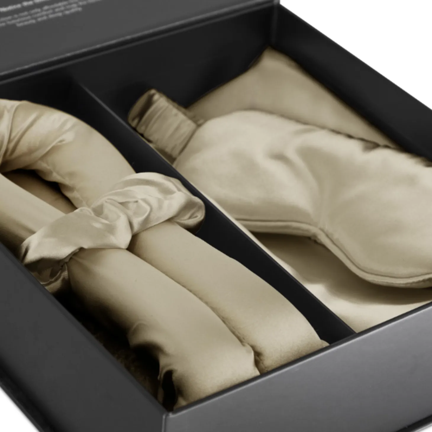 De Sleeptime Beauty Set bevat vier essentiële items die speciaal zijn ontworpen om je haar en huid te beschermen terwijl je slaapt. De satijnen kussensloop zorgt ervoor dat je haar ’s nachts niet pluist en voorkomt het ontstaan van slaaprimpels. Het satijnen oogmasker biedt een zachte, comfortabele pasvorm en helpt bij het verminderen van oogrimpels. De satijnen scrunchie houdt je haar op zijn plaats zonder het te beschadigen, ideaal voor elk haartype.