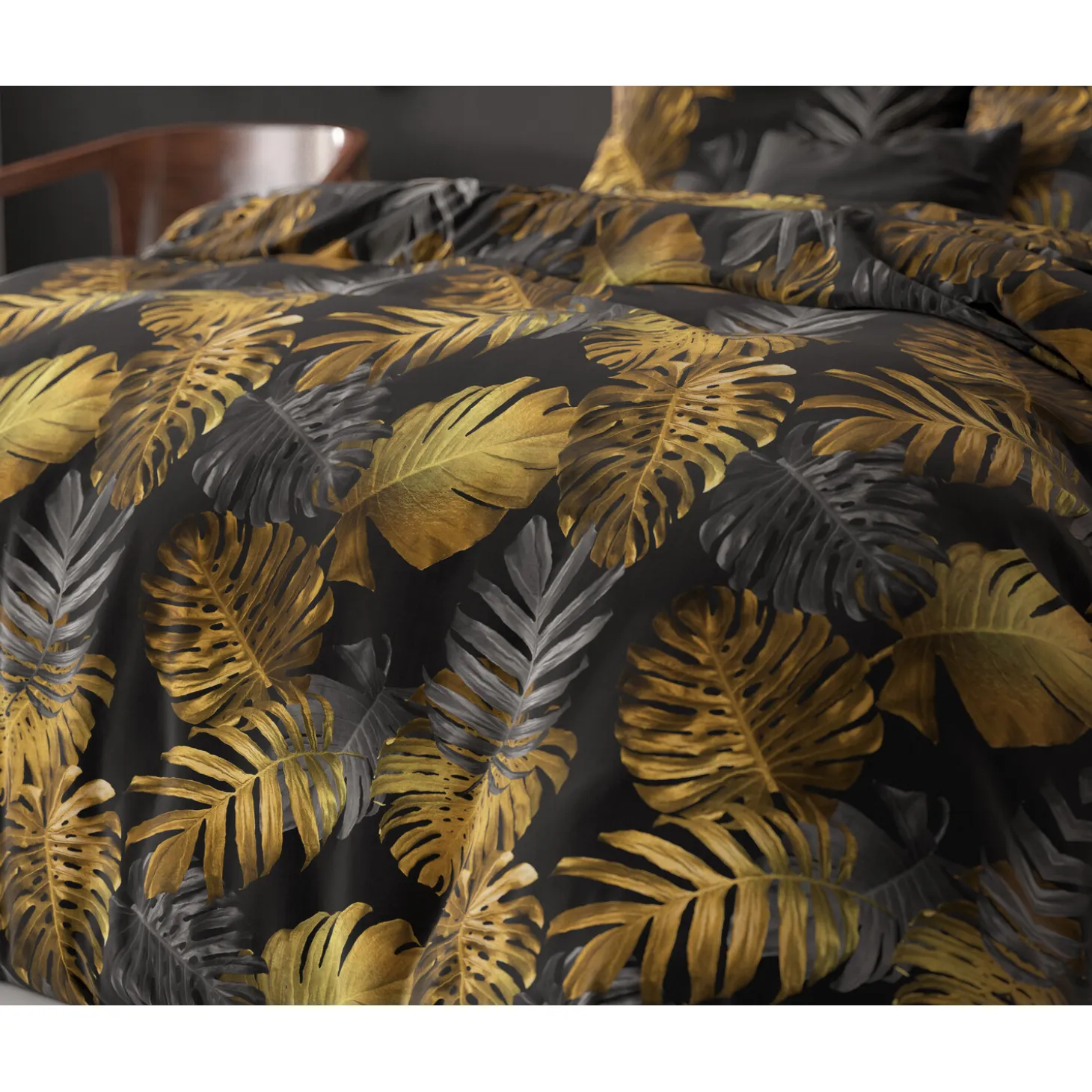 Dit fijne Sleeptime Elegance Brigitte-dekbedovertrek met stijlvolle uitstraling is onmisbaar in je linnenkast. Het heeft een dessin vol met bladeren die gelaagd over elkaar heen lopen. Door het gebruik van verschillende tinten ontstaat een mooi diepte-effect. Voor een mooi geheel zit er een kussensloop bij met hetzelfde dessin. Het dekbedovertrek heeft een totale lengte van 220 cm en kan simpelweg afgesloten worden met de handige drukknopen aan de onderzijde.