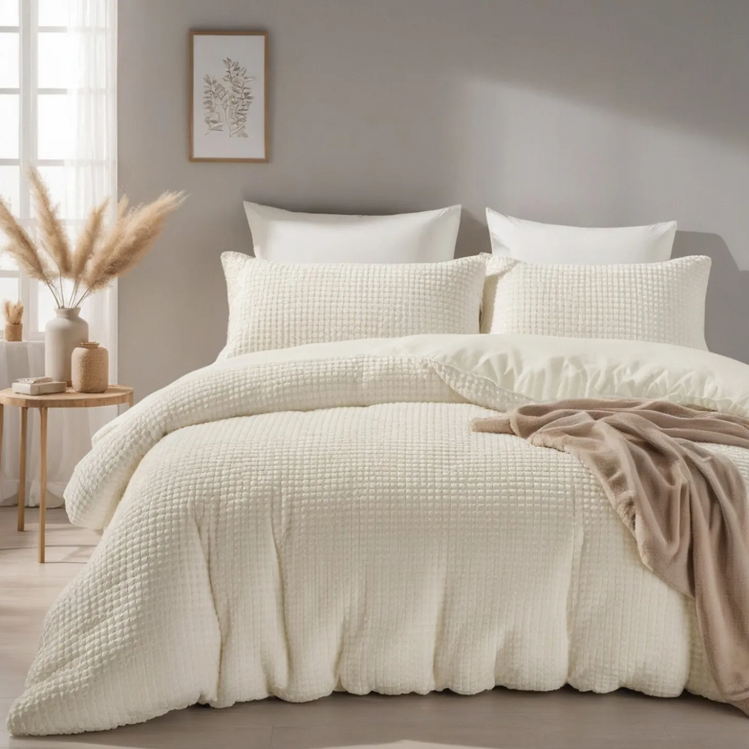 Teddy stof is momenteel een grote trend in de mode- en interieurwereld, en met dit dekbedovertrek breng je deze stijlvolle en cosy look naar je slaapkamer. Het dekbedovertrek is geproduceerd met gecertificeerde stoffen, wat betekent dat het veilig en vrij van schadelijke stoffen is.