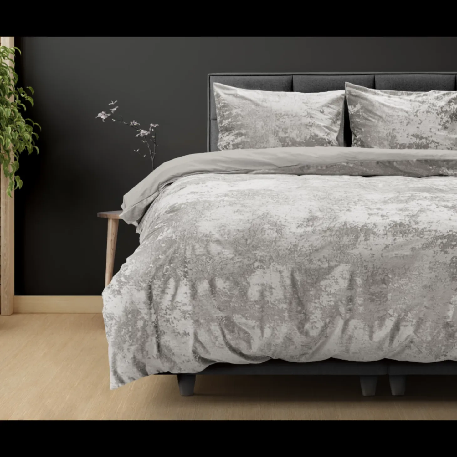 Verwen uzelf met een dekbedovertrek dat niet alleen stijlvol oogt, maar ook heerlijk zacht aanvoelt. Dit hoogwaardige dekbedovertrek combineert de luxe uitstraling van crushed velvet met het comfort van 100% katoen, waardoor u elke nacht in ultieme luxe kunt slapen. De bovenzijde, gemaakt van crushed velvet, biedt een elegante uitstraling met een subtiel gewassen effect, terwijl de onderzijde, vervaardigd van hoogwaardig katoen, zorgt voor een ademende en comfortabele nachtrust.