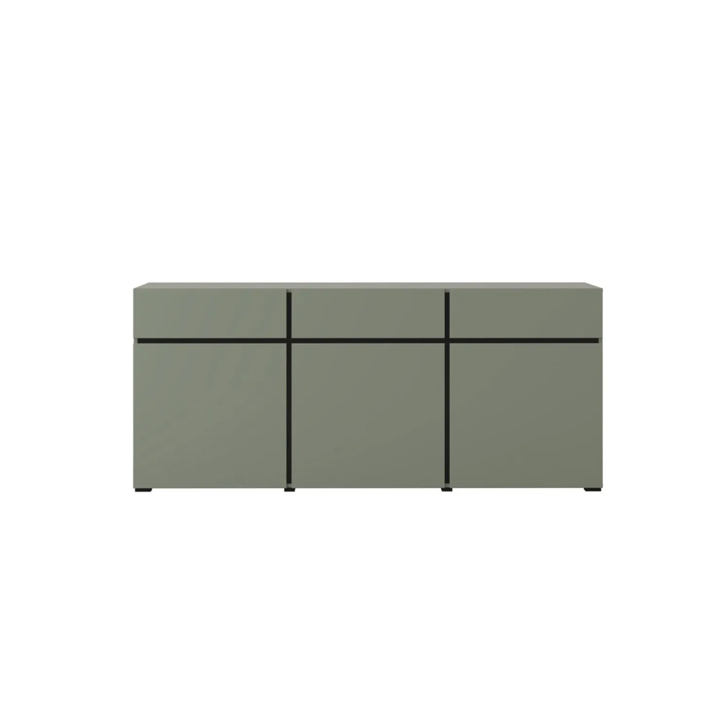 Het dressoir Crotone heeft een strak en modern ontwerp met een greeploos front en een rustige, symmetrische indeling. De combinatie van meerdere kastvakken zorgt voor overzichtelijke opbergruimte, terwijl het minimalistische design zorgt voor een nette en eigentijdse uitstraling.