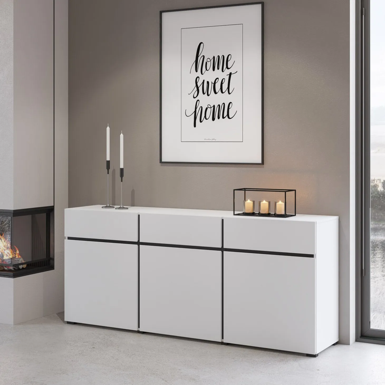 Het dressoir Crotone heeft een strak en modern ontwerp met een greeploos front en een rustige, symmetrische indeling. De combinatie van meerdere kastvakken zorgt voor overzichtelijke opbergruimte, terwijl het minimalistische design zorgt voor een nette en eigentijdse uitstraling.