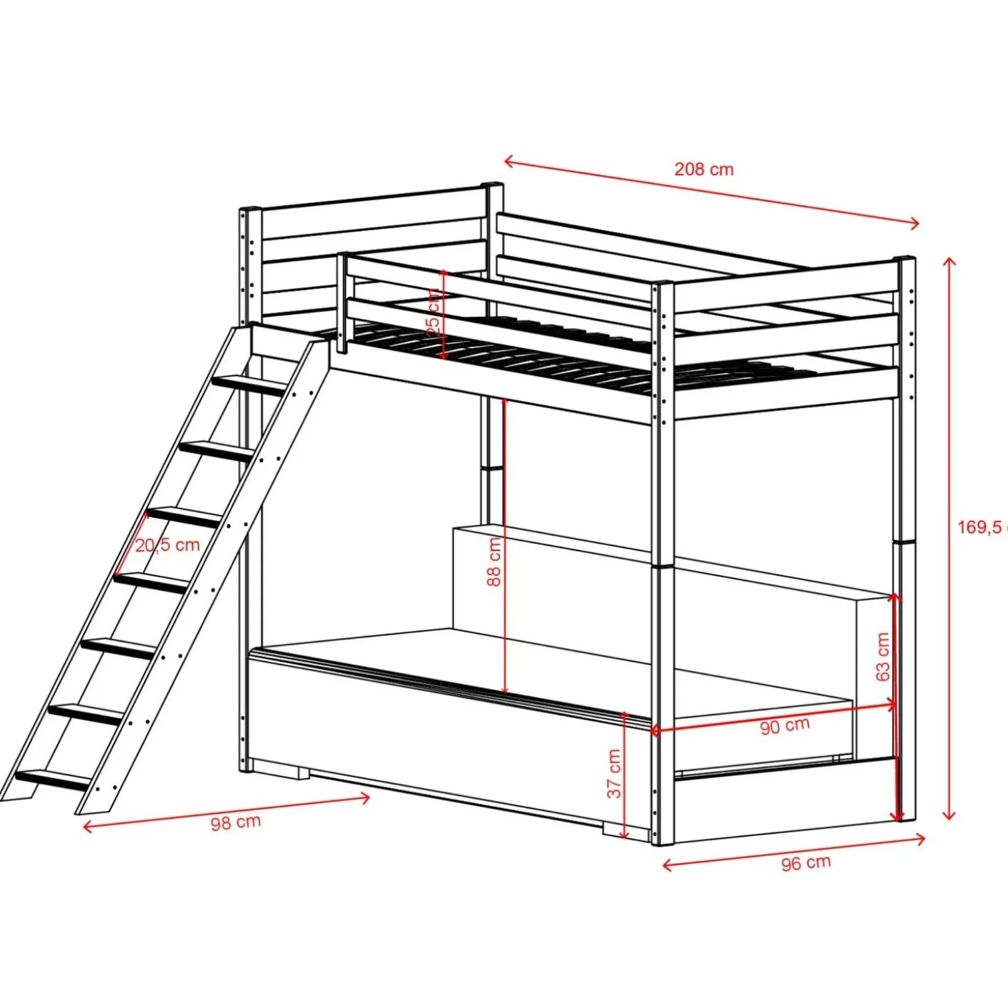 De hoogslaper met slaapbank Sophie combineert een strak verhoogd slaapgedeelte met een comfortabele zitplek onder het bed. De open constructie met rechte lijnen zorgt voor een ruimtelijk geheel, terwijl de geïntegreerde bank onderin een fijne plek biedt om te ontspannen of te gebruiken als extra slaapruimte.