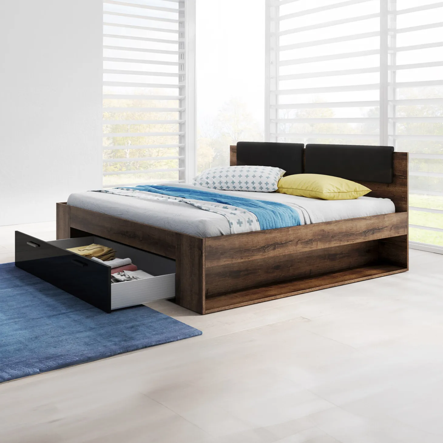 Houten Bed met Lade Genua – Walnoot – Bedframe