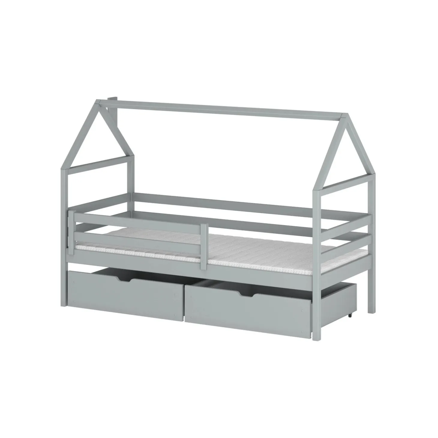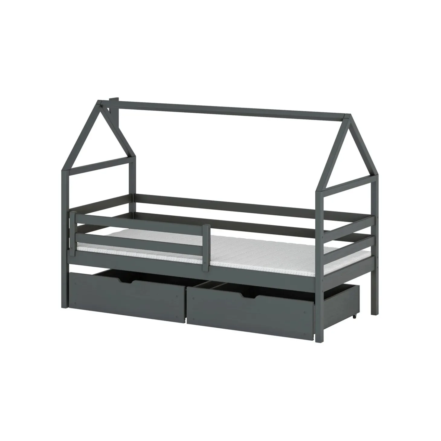 Het Huisbed Aaron is een droom voor elk kind. Het stevige frame is perfect om een stoffen hemel, klamboe of lichtsnoer aan te hangen, waardoor je een knusse en gezellige sfeer creëert. Dit bed combineert fantasierijk slapen met praktisch gemak dankzij de twee ruime lades onder het bed, ideaal voor speelgoed, dekentjes of andere spullen. Een veilige, sfeervolle en opgeruimde kinderkamer in één.