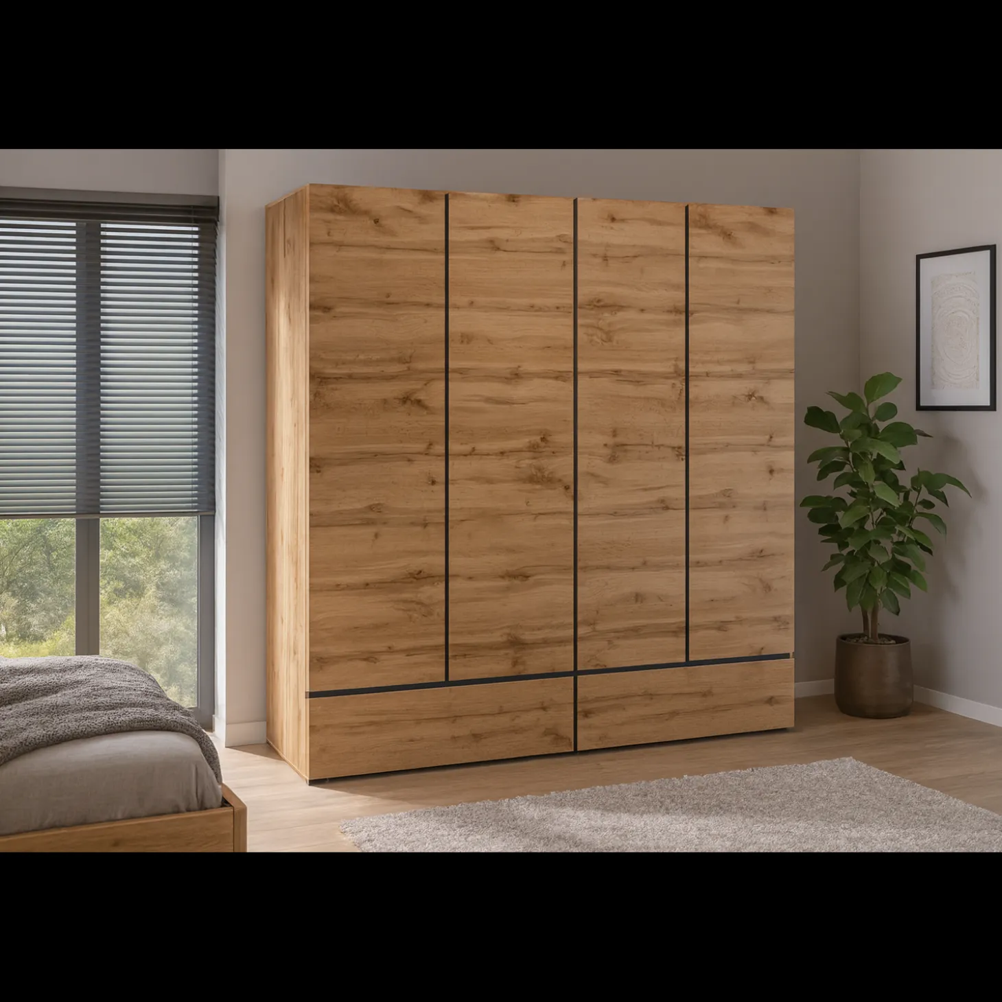 Kledingkast Crotone – Eiken – 4-Deurs met Lades