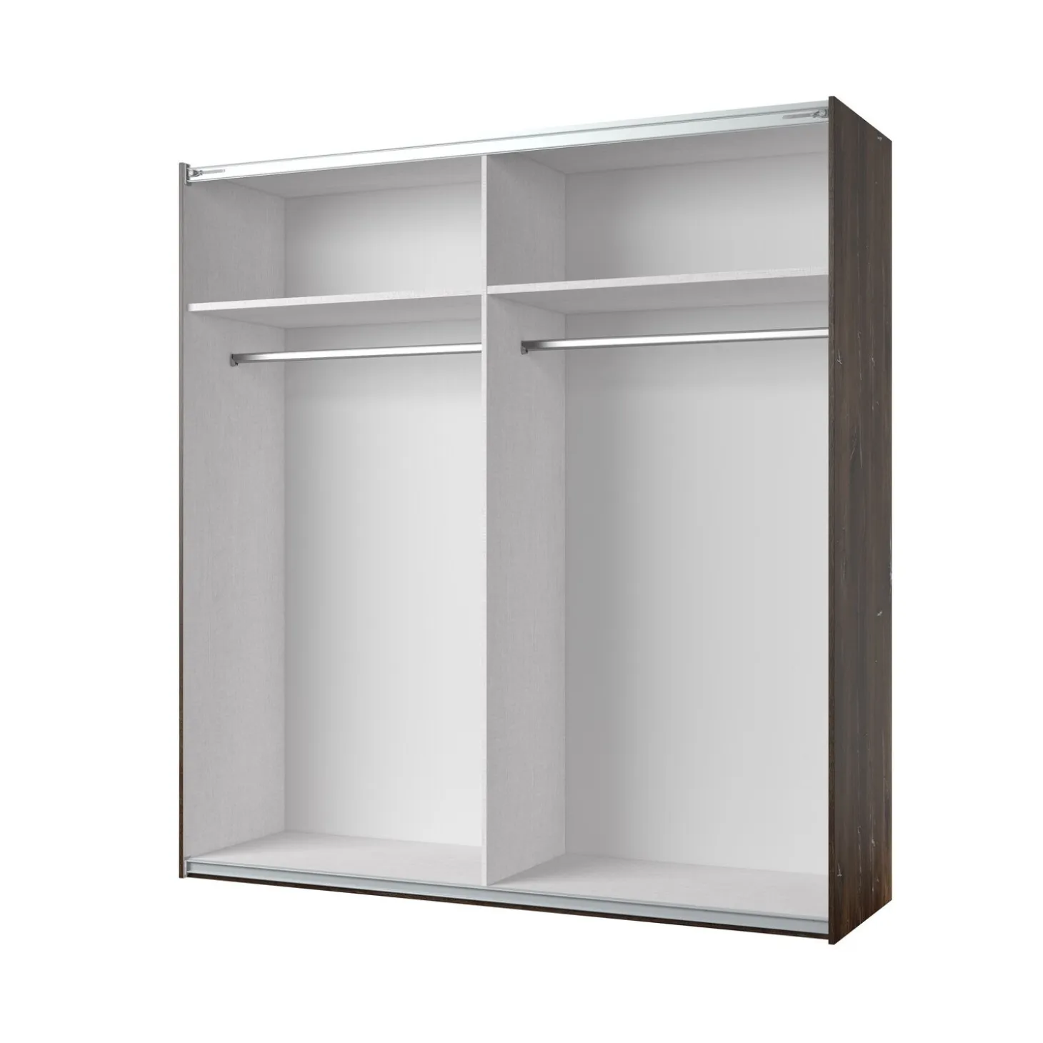 Achter de schuifdeuren vind je een ruime indeling met twee brede hanggedeeltes voorzien van kledingroedes en bovenplanken. Zo heb je volop plek voor jurken, jassen, hemden en andere kledingstukken. De spiegeldeuren zorgen niet alleen voor extra gebruiksgemak bij het aankleden, maar laten de slaapkamer ook groter en lichter ogen.