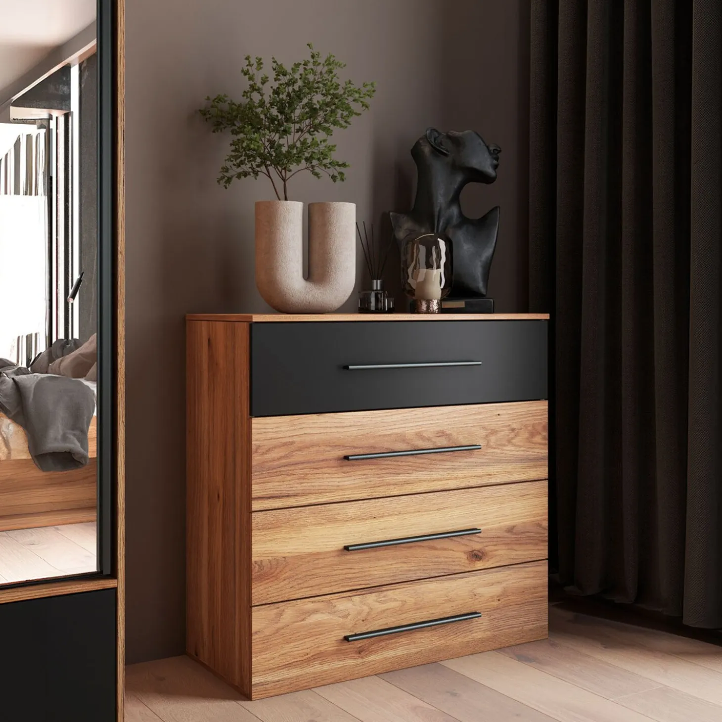 De ladekast Bern heeft een compact en strak ontwerp met een duidelijke horizontale indeling. De combinatie van meerdere lades zorgt voor een overzichtelijk geheel met een praktische en moderne uitstraling.