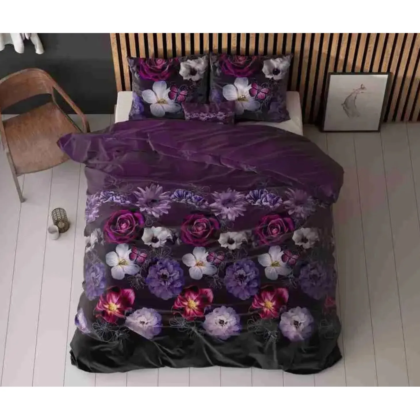 Dit fleurige Sleeptime Elegance Magic Flower-dekbedovertrek brengt de mooie natuur je slaapkamer binnen. Het heeft een vrolijk dessin dat bestaat uit een gedetailleerde print met bloemen in allerlei tinten paars. De prachtige kleuren springen onmiddellijk in het oog en zorgen voor een leuke uitstraling. Als je het overtrek omslaat, dan verschijnt er een effen paarse print. De heldere print is tot in detail uitgewerkt en ook terug te zien op de kussenslopen. Dit dekbedovertrek heeft verder een instopstrook over de gehele breedte en kan simpelweg afgesloten worden met de drukknopen.