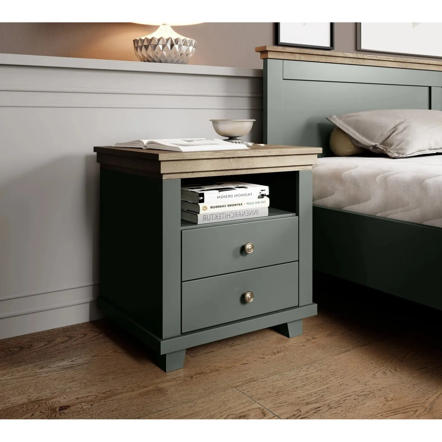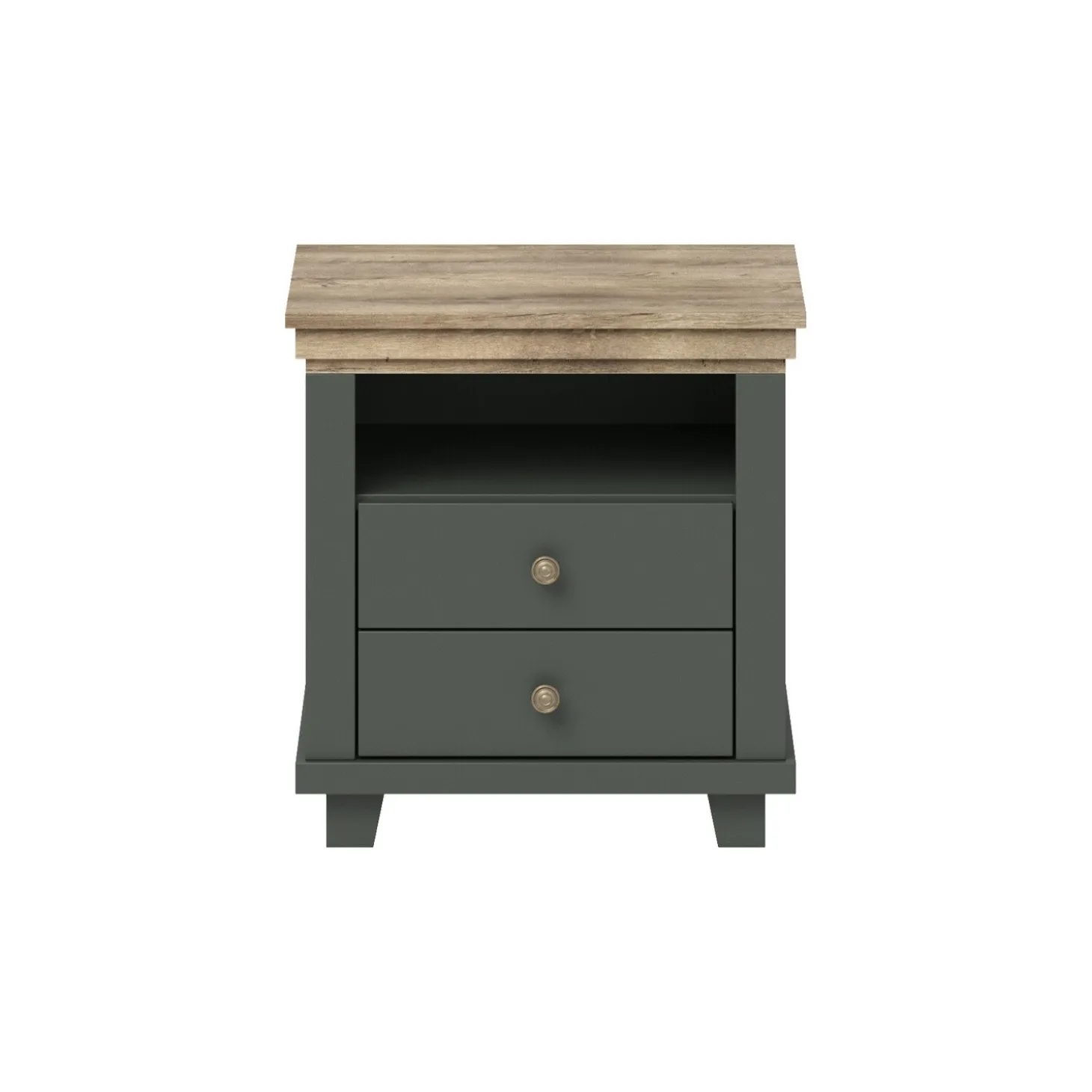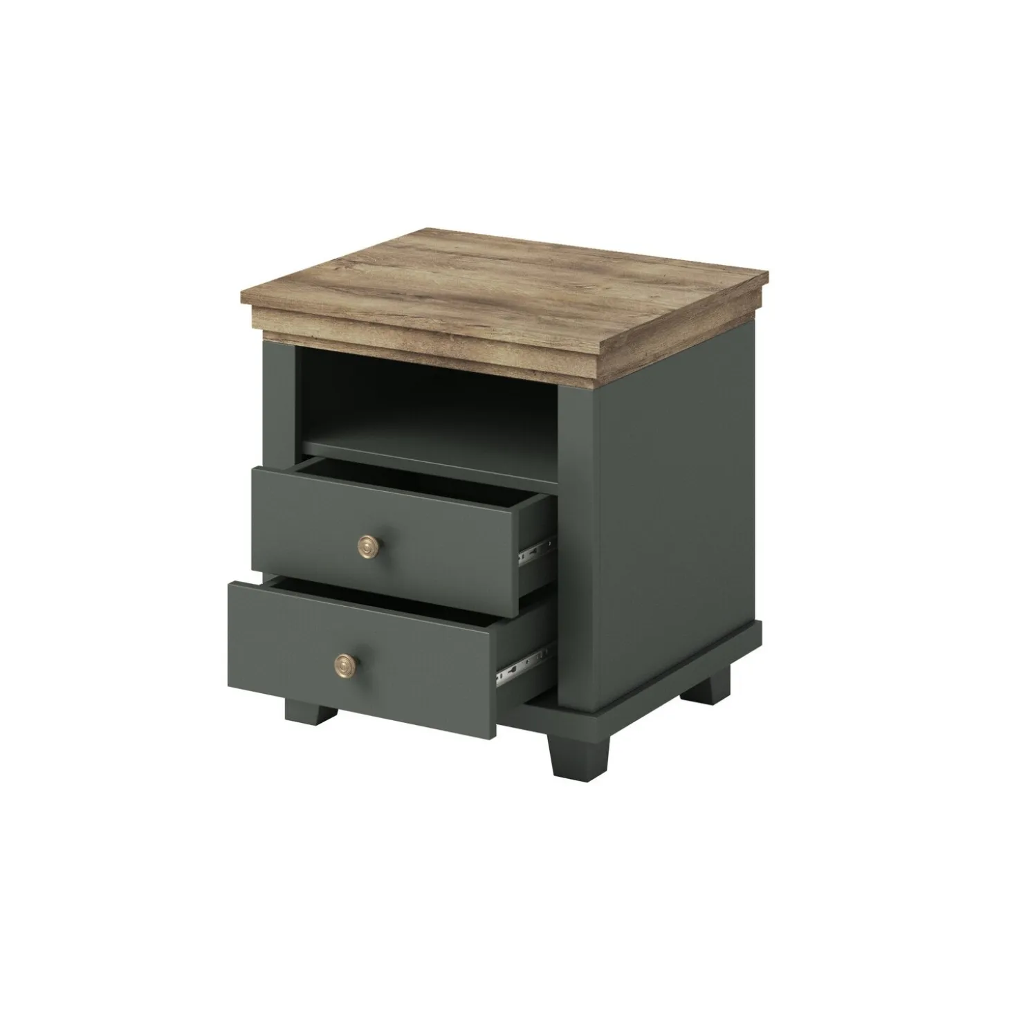 Het Nachtkastje Elvas combineert klassieke charme met een moderne twist. De donkergroene afwerking in combinatie met het warme houtkleurige blad geeft dit nachtkastje een stijlvolle en tijdloze uitstraling die perfect past in zowel landelijke als moderne slaapkamers.