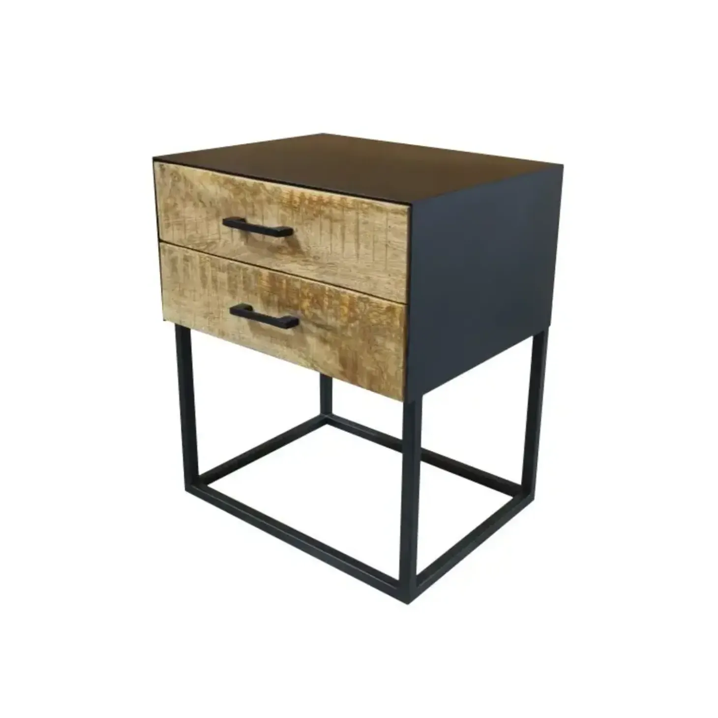 Nachtkastje Mart combineert een strak design met praktische functionaliteit. Gemaakt van massief mangohout en ondersteund door een stevig zwart metalen frame, past Mart perfect in zowel moderne als industriële interieurs. Met twee ruime lades biedt dit nachtkastje volop opbergruimte voor al je spullen – van boeken tot opladers en andere nachtelijke essentials.