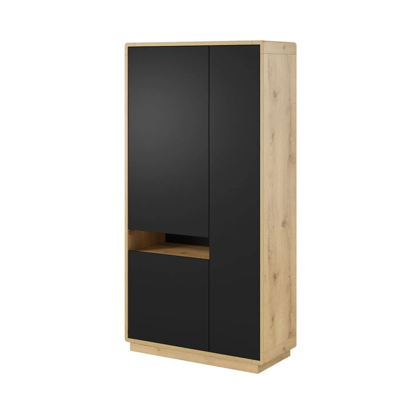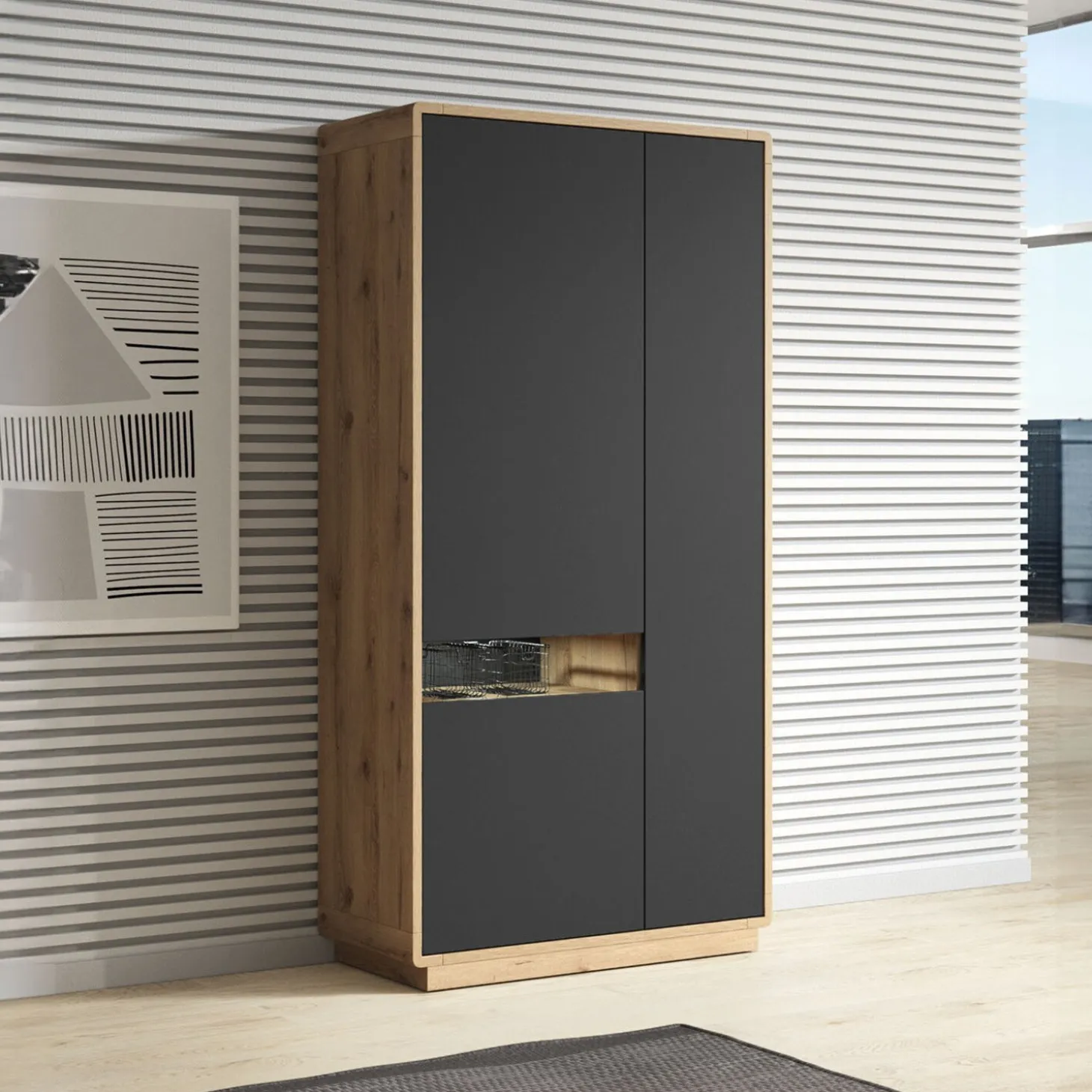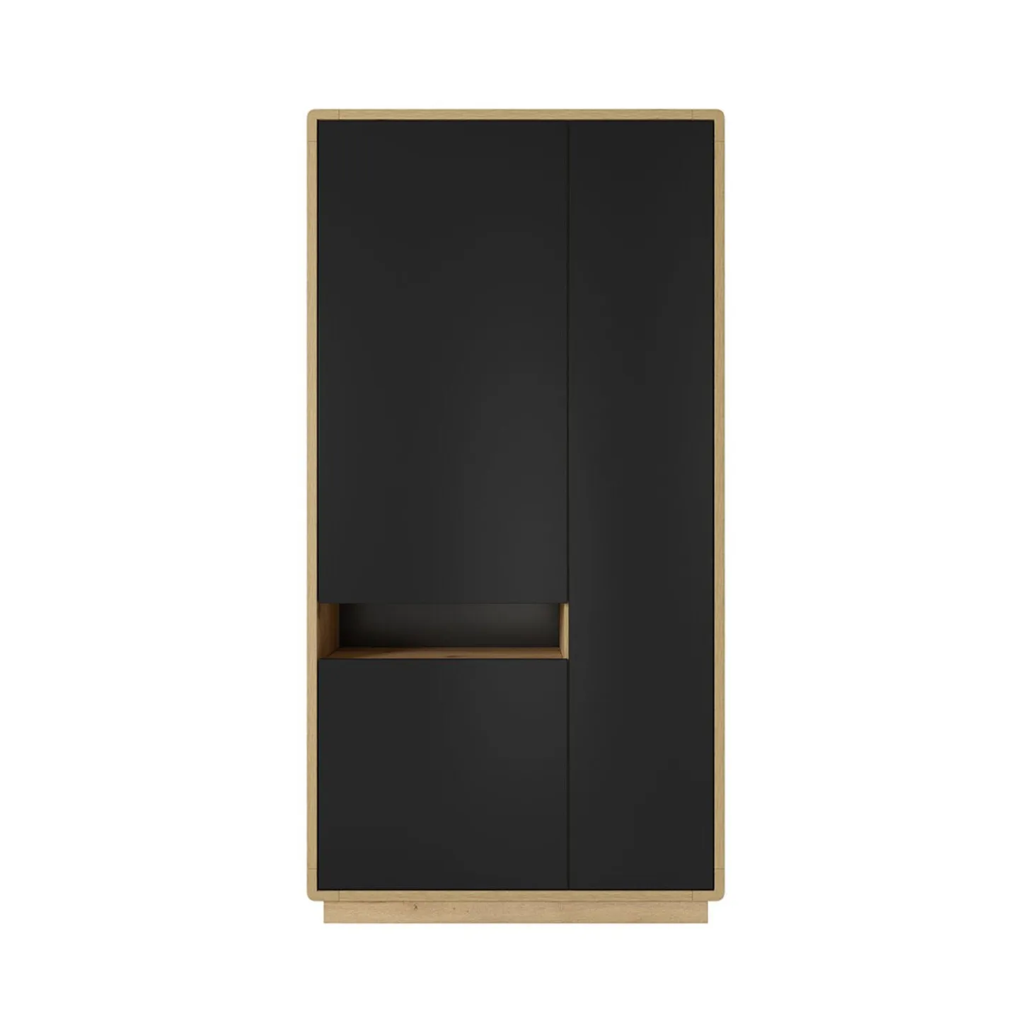 De opbergkast Asmund heeft een strak en hoog ontwerp met een minimalistische uitstraling. De gesloten fronten worden doorbroken door een subtiel open vak, wat zorgt voor een speels en modern detail binnen het geheel.